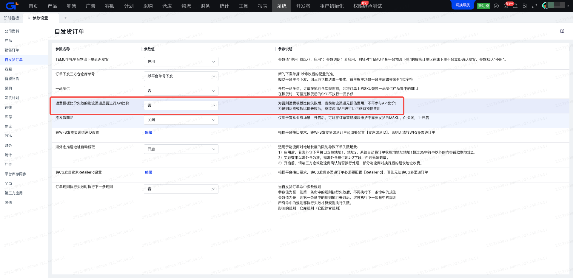 参数名称: 运费模板比价失败的物流渠道是否进行API比价