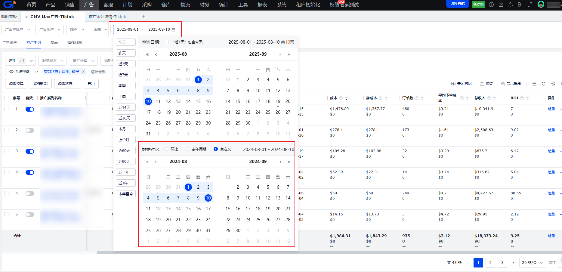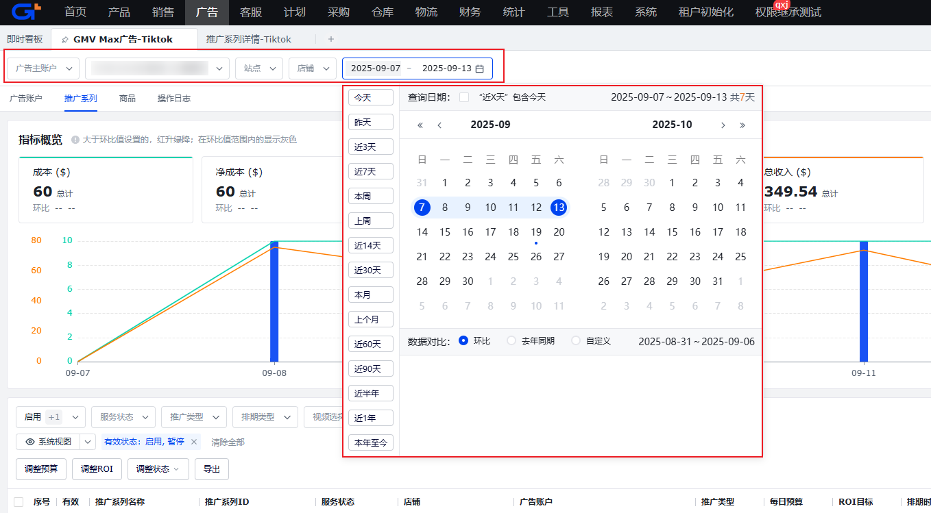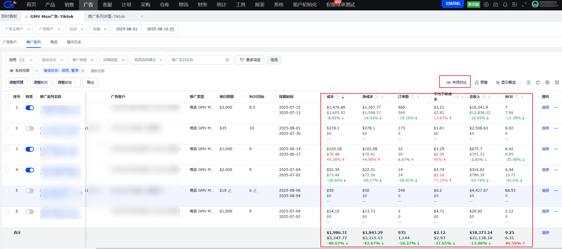 - 支持相关操作:针对推广系列调整预算、调整ROI目标值、调整状态