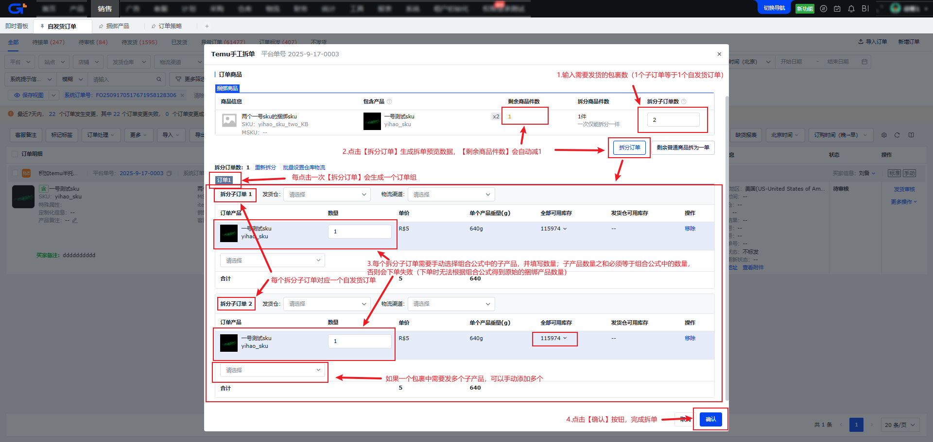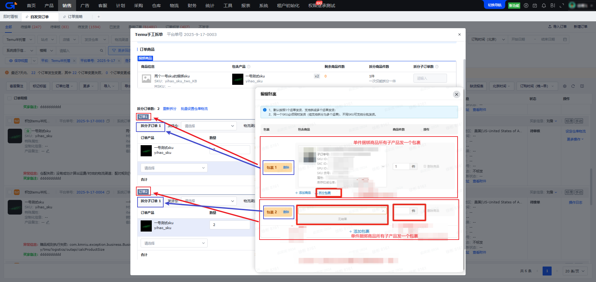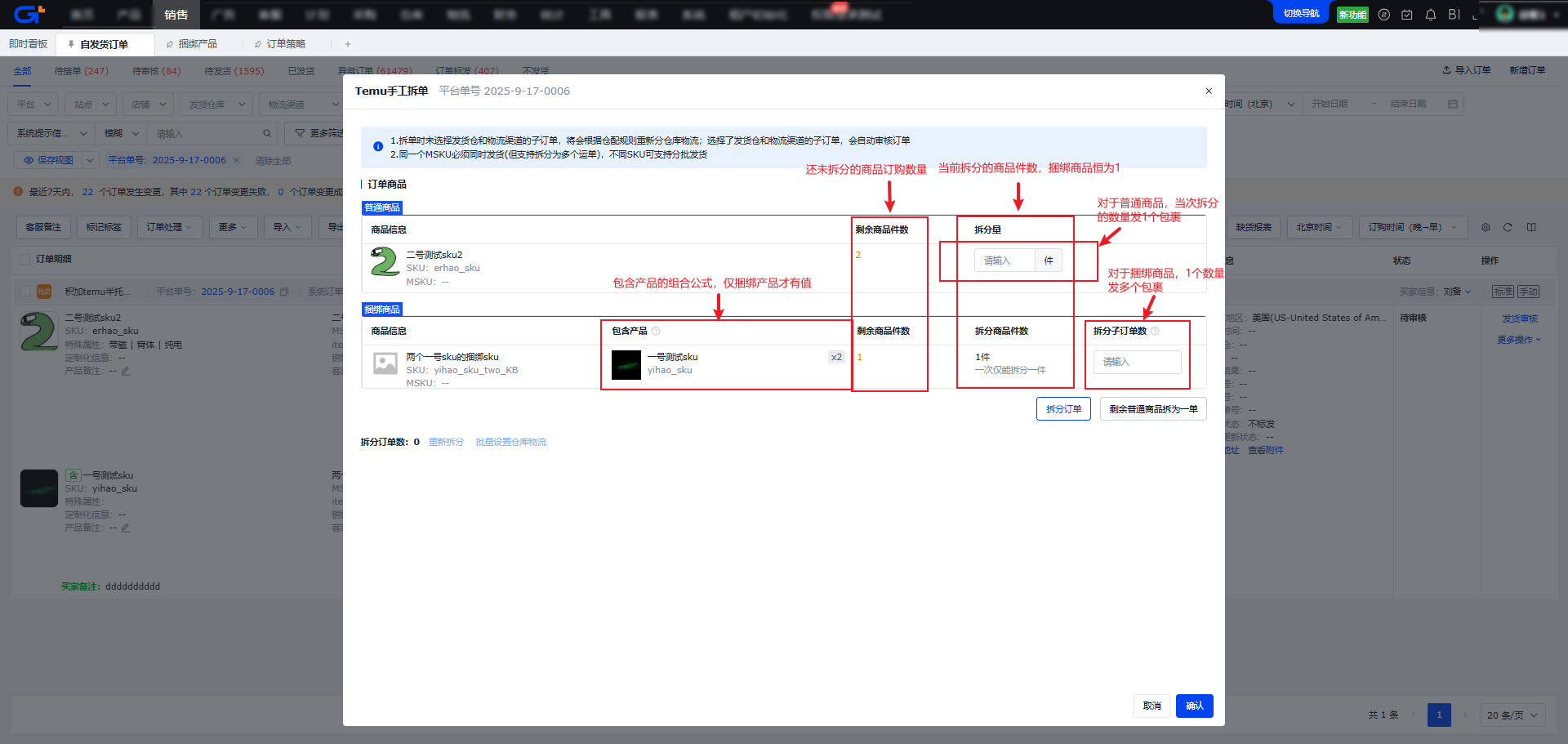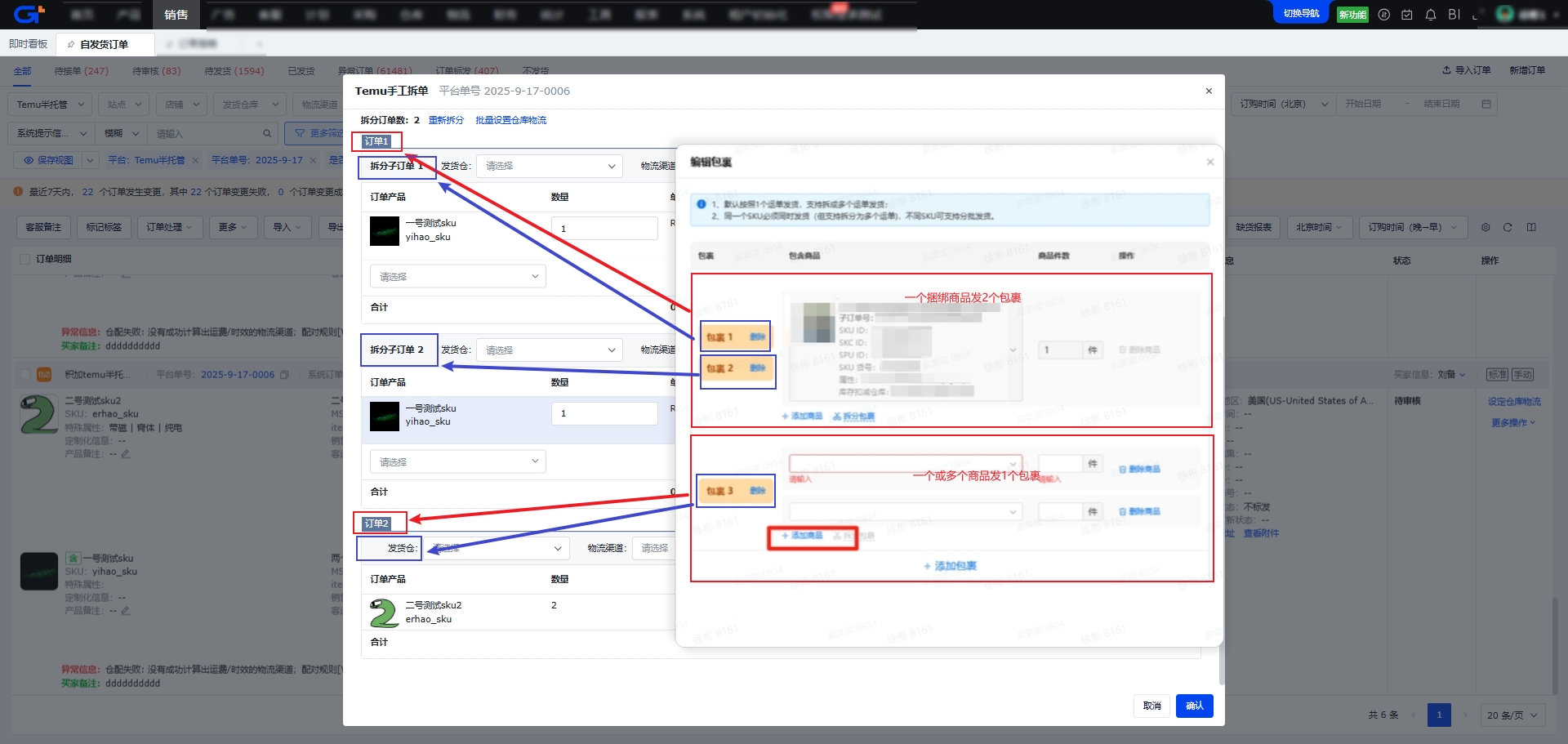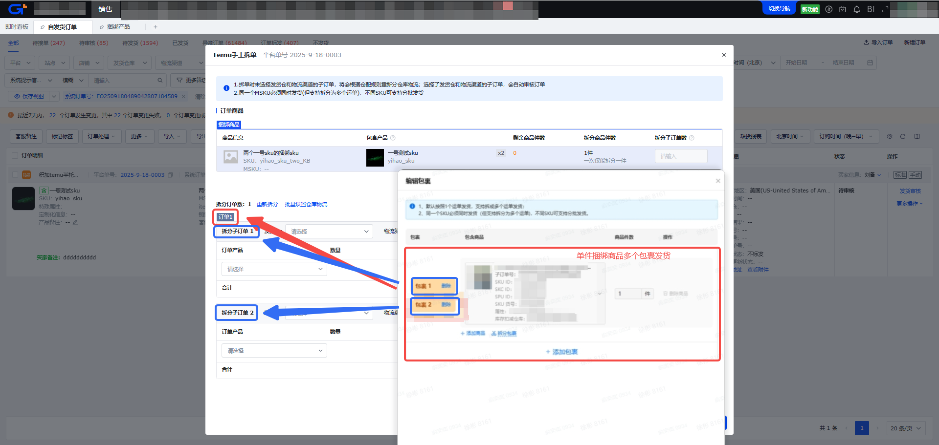 - 等同于Temu后台【拆分包裹】功能。