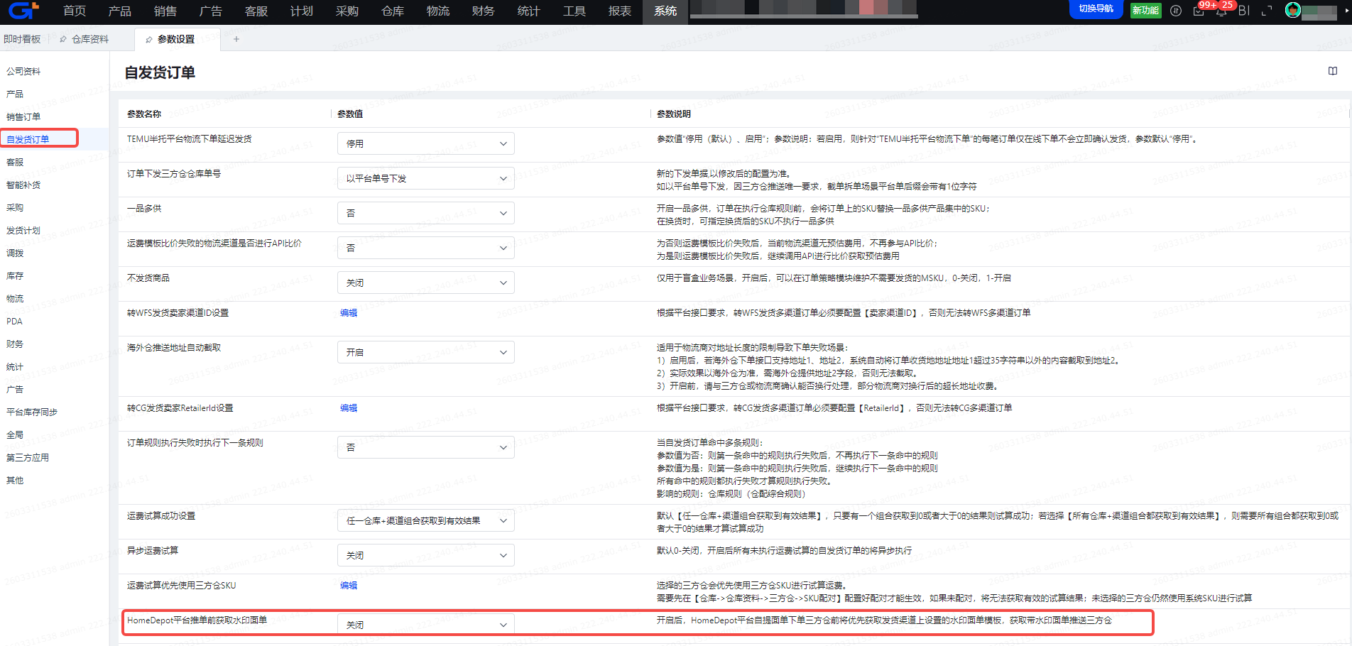 适用前提:参数设置为【开启】;若参数为【关闭】,直接执行原有推单流程,不触发水印面单获取逻辑。
