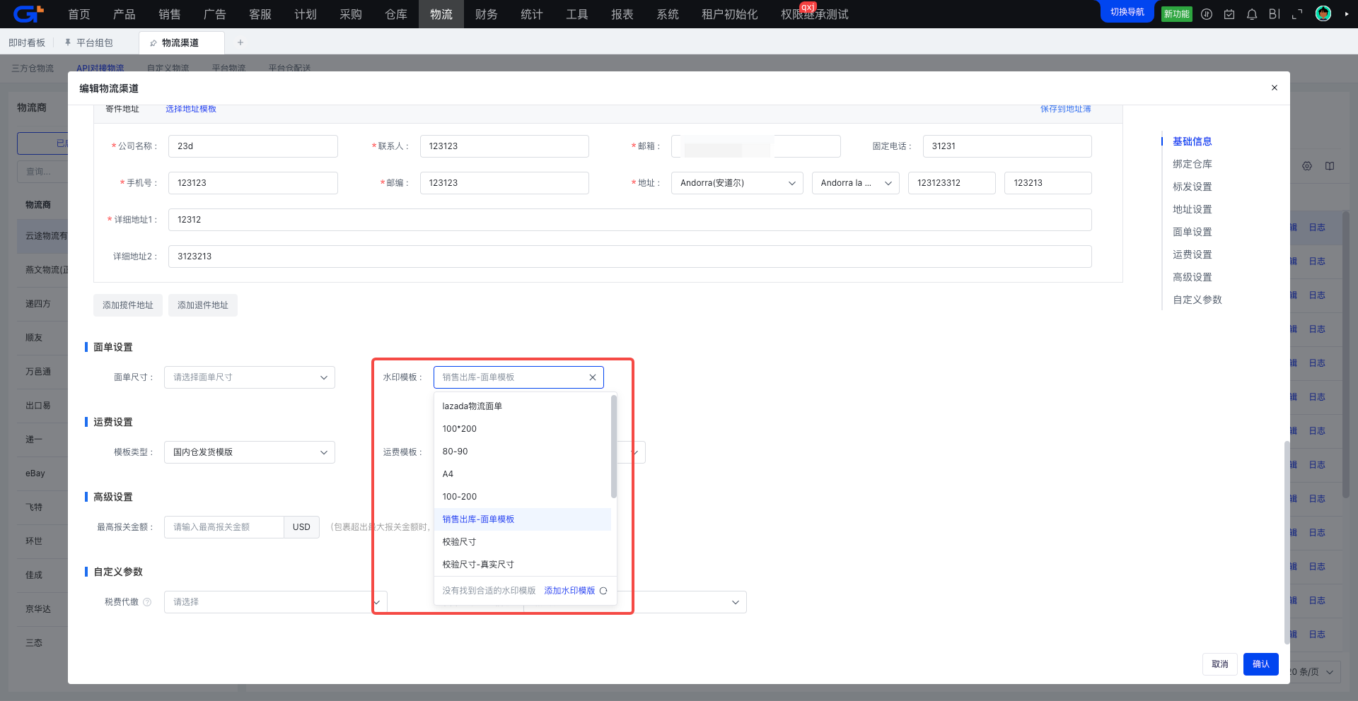 已维护模板:获取水印面单后推送三方仓