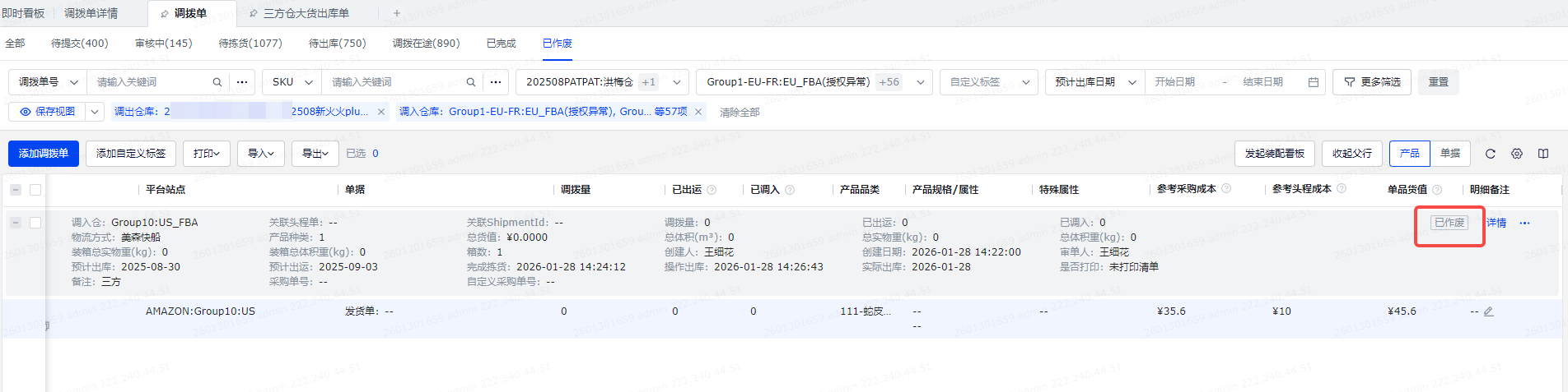 调拨单变更为已作废: