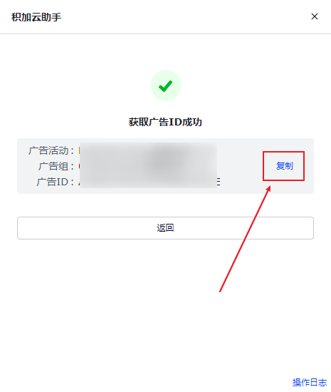A:无法校验。因为ADID是用户手动粘贴进来的,API接口也没有提供准确的ADID信息,所以系统是无法校验当前粘贴进来的ADID与实际选择的广告活动是否一致的,需要用户自己保证。