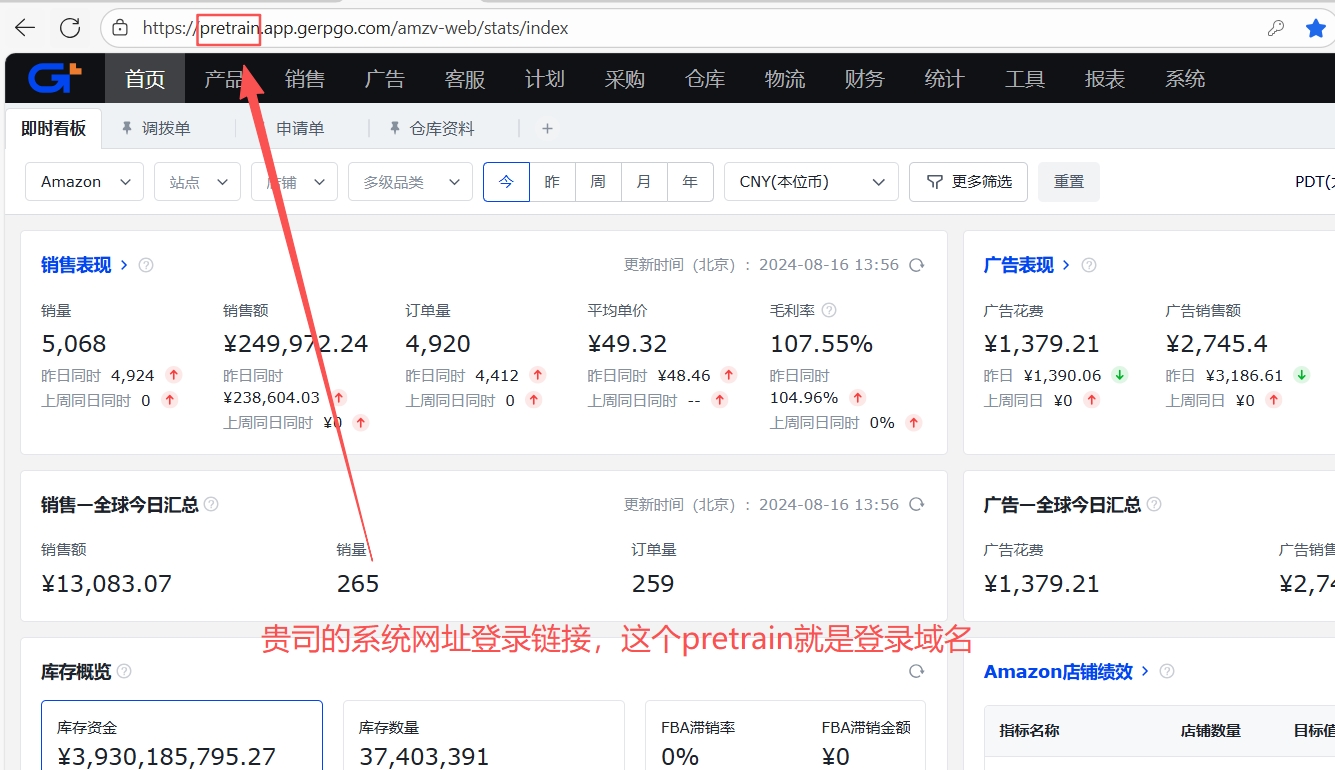 域名:登录积加ERP系统网址.app前面的词组,例如jjiatest.app.gerpgo.com,输入ji