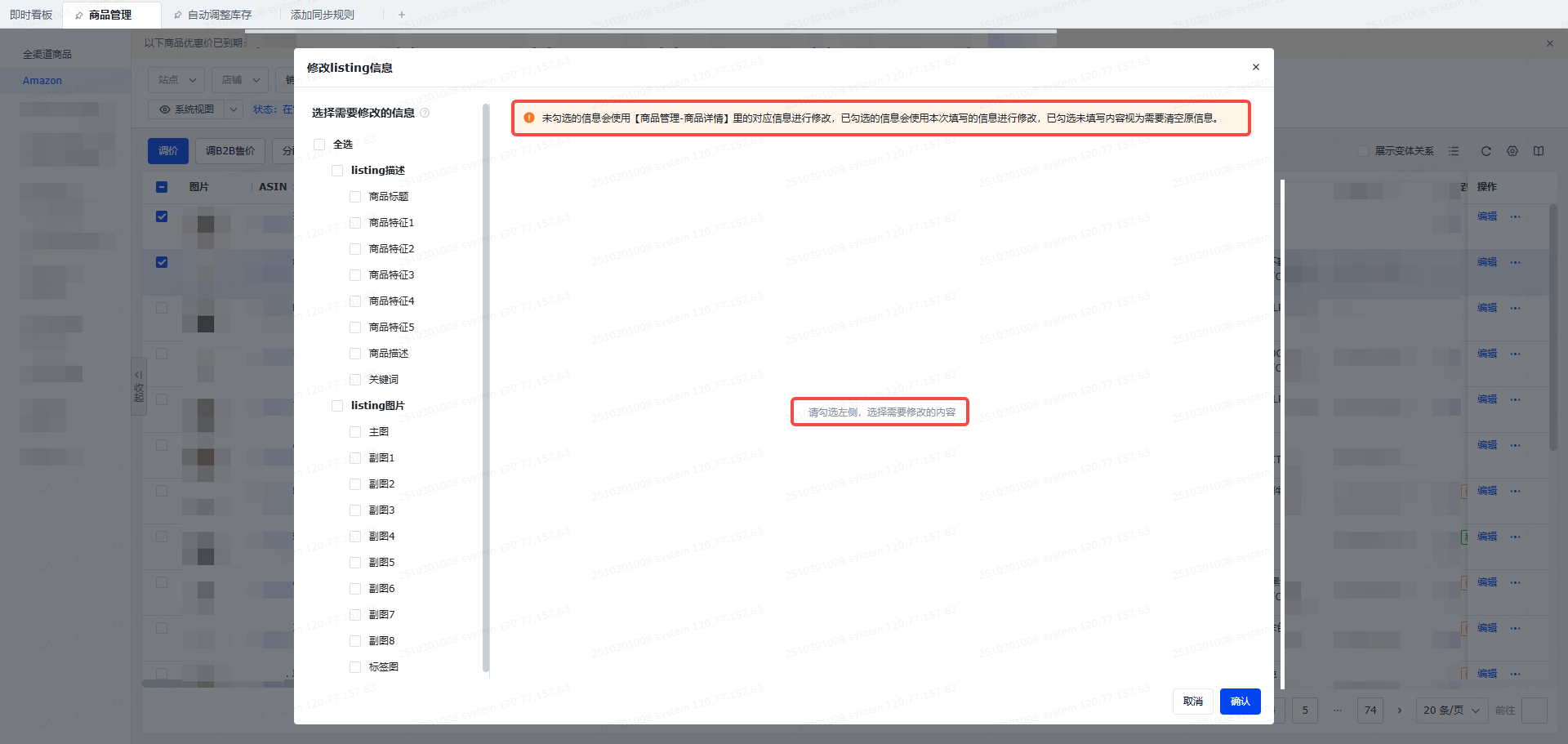 批量修改listing信息时,支持只勾选个别字段进行更新。未勾选的字段保持原信息不变。(特殊的:如勾选了该字段,但字段又不填写内容。则会清空该字段原来的信息)