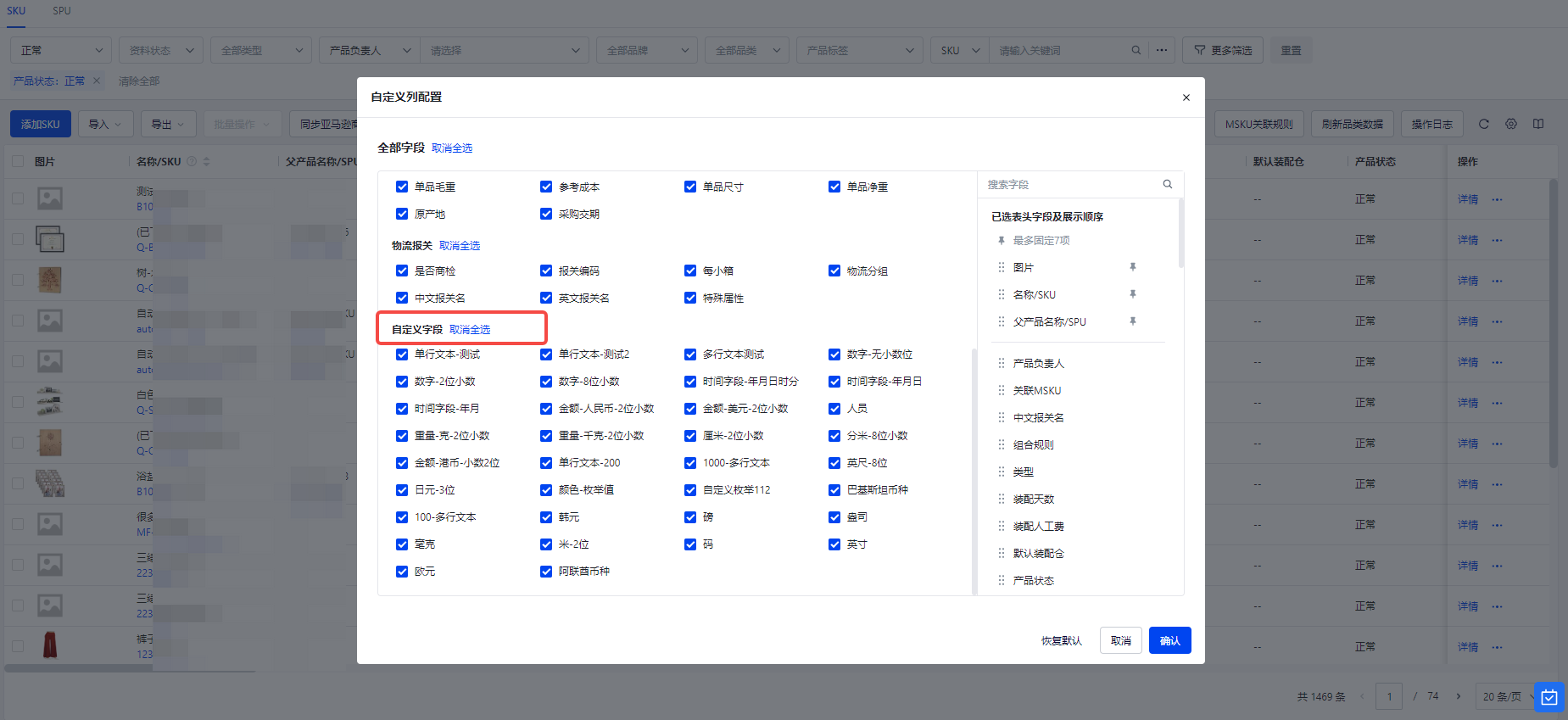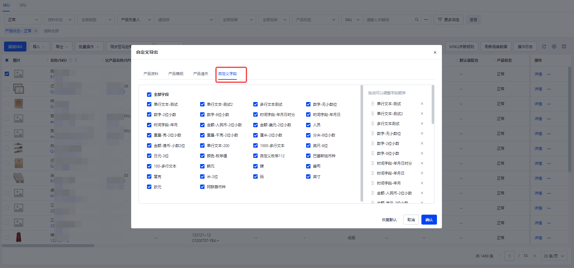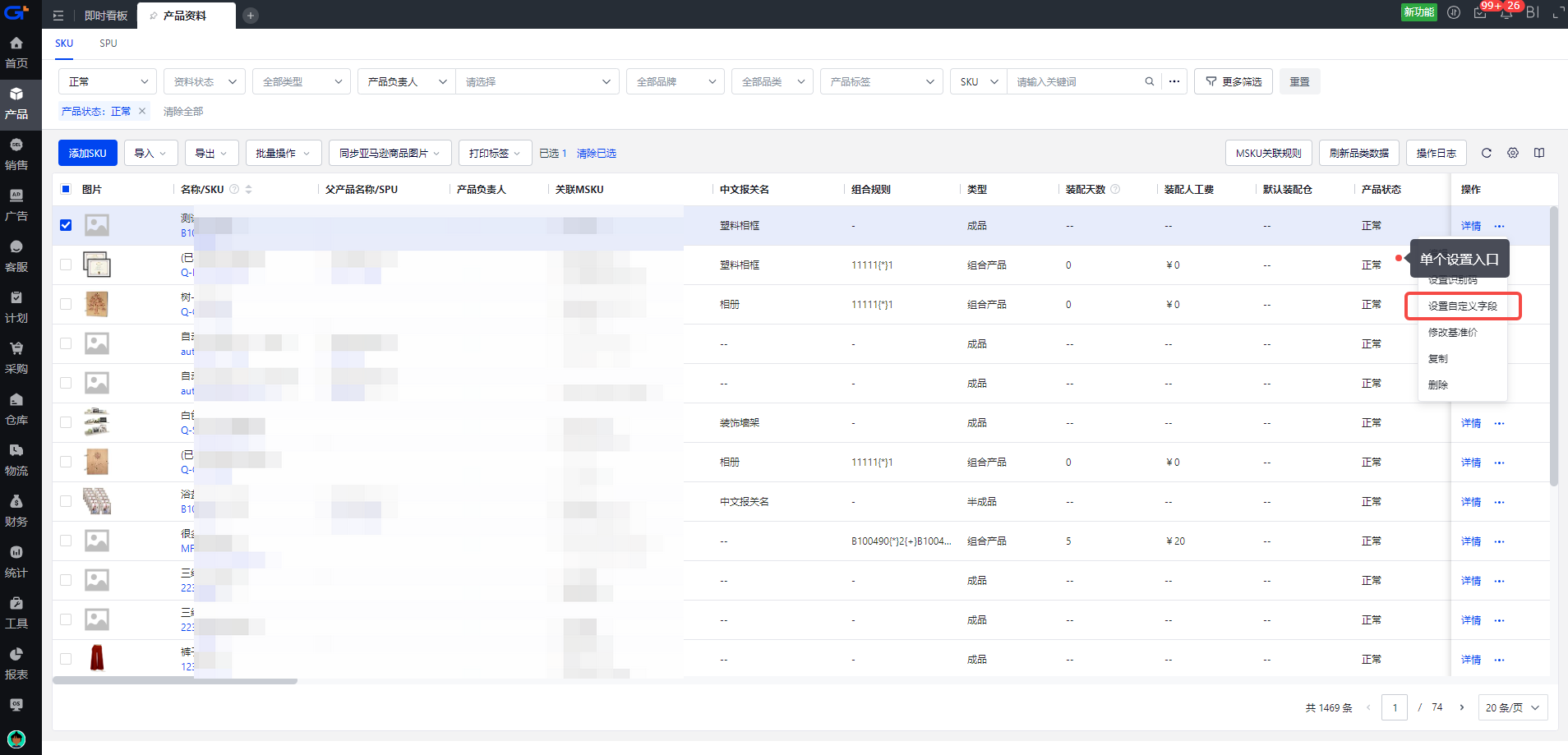 1、目前支持各业务线菜单接入自定义字段能力,当前仅有产品资料菜单已接入