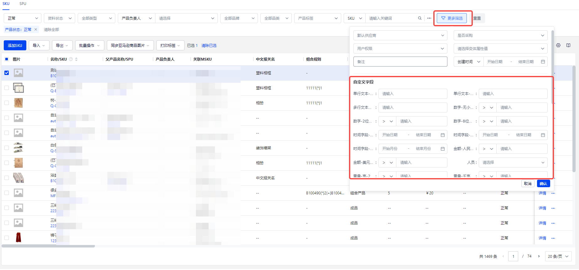 操作【更多筛选】根据实际需求筛选自定义字段。