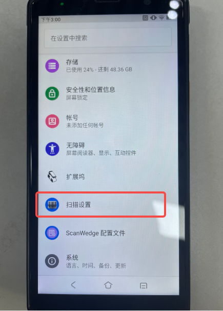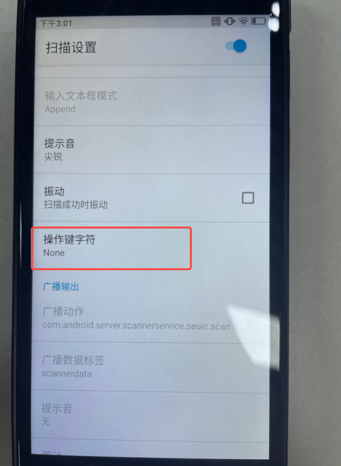 在【设置】找到入口【扫描设置】,进入扫描设置页面找到【操作健字符】设置成:None