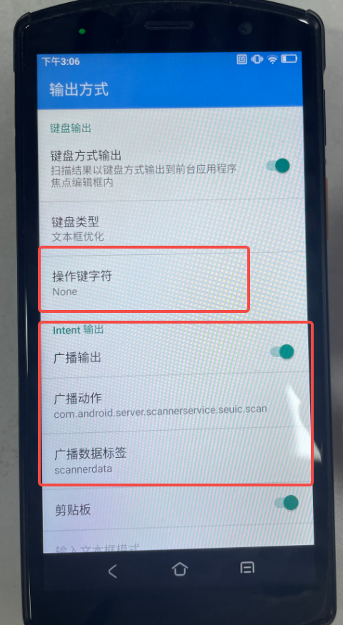进入开发者选项后,找到输入框:广播名称,输入:com.android.server.scannerservice.seuic.scan