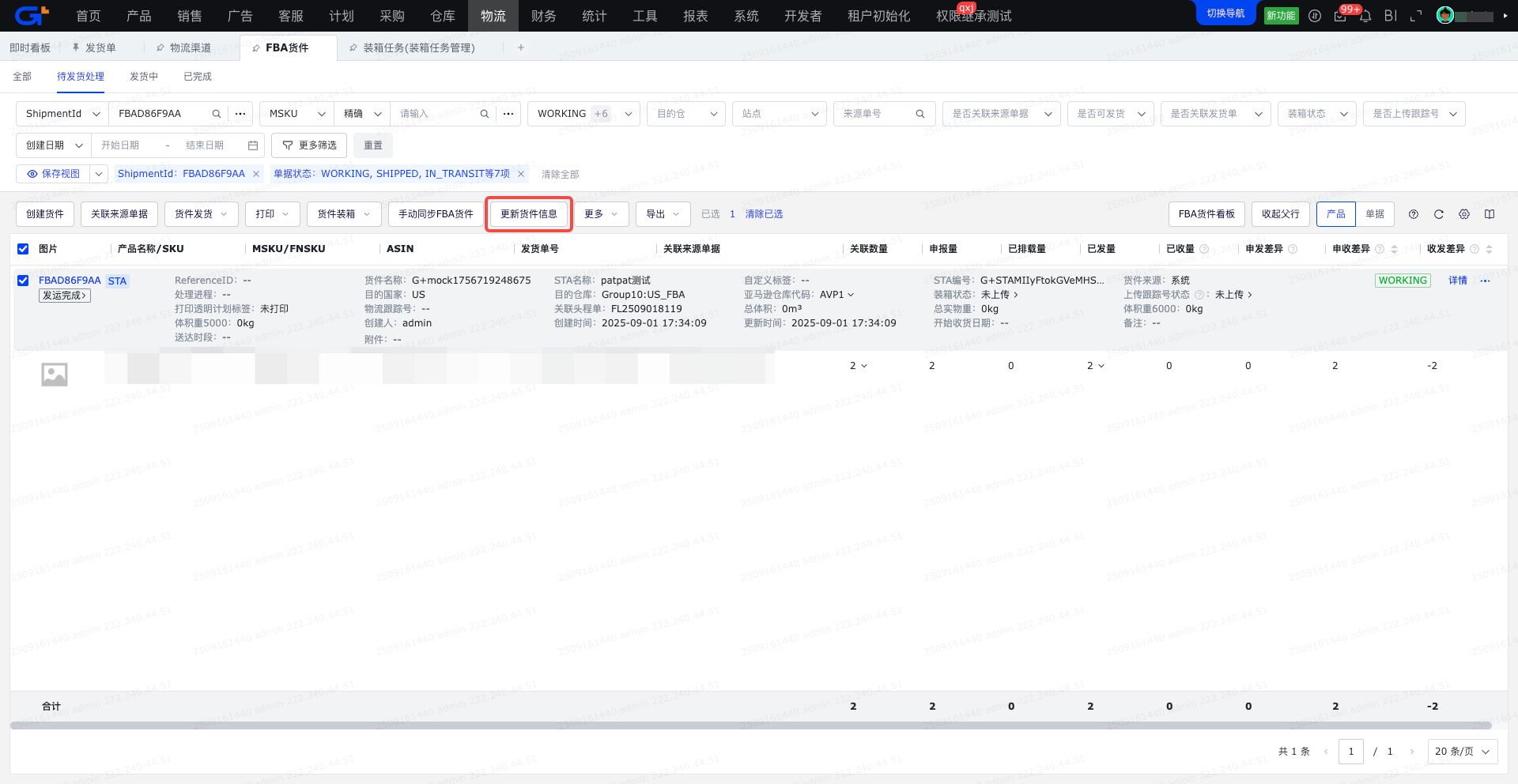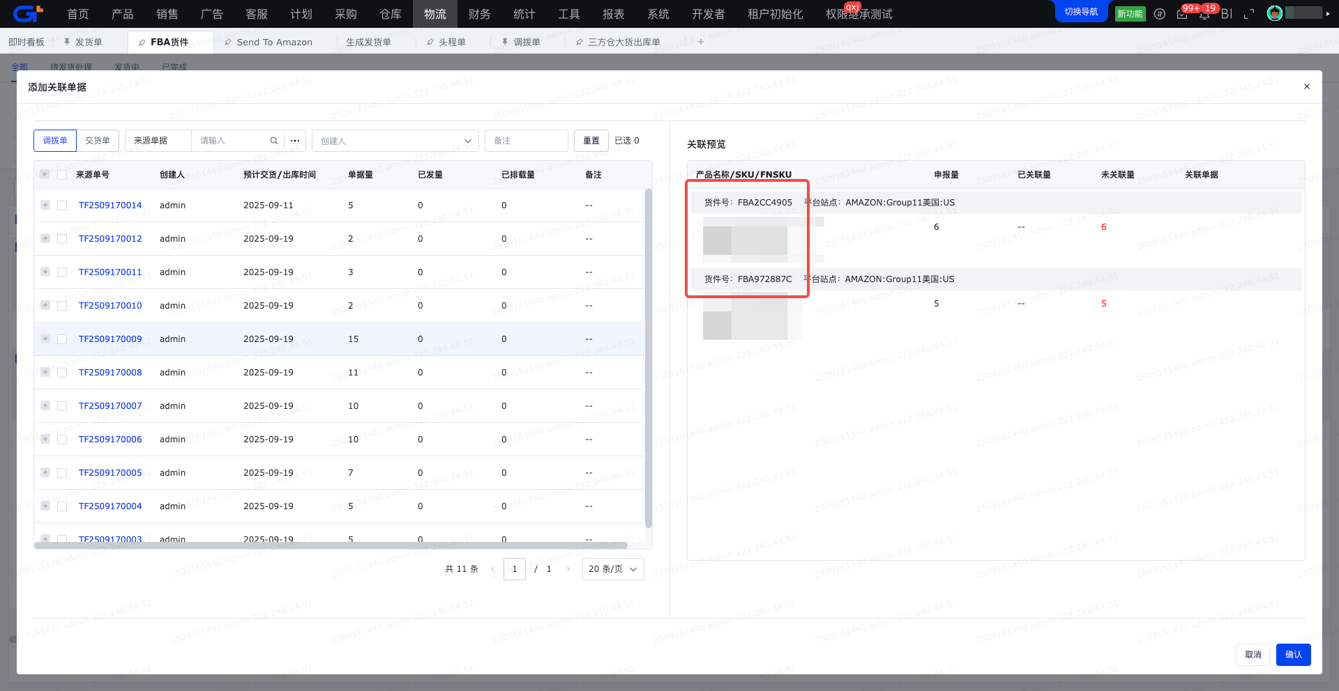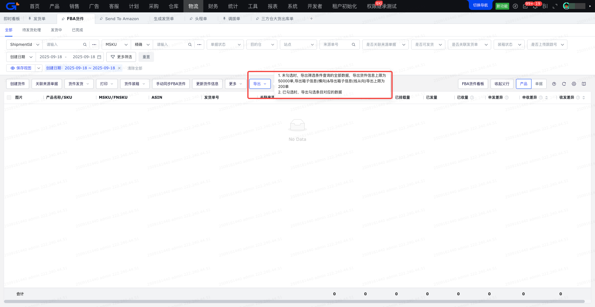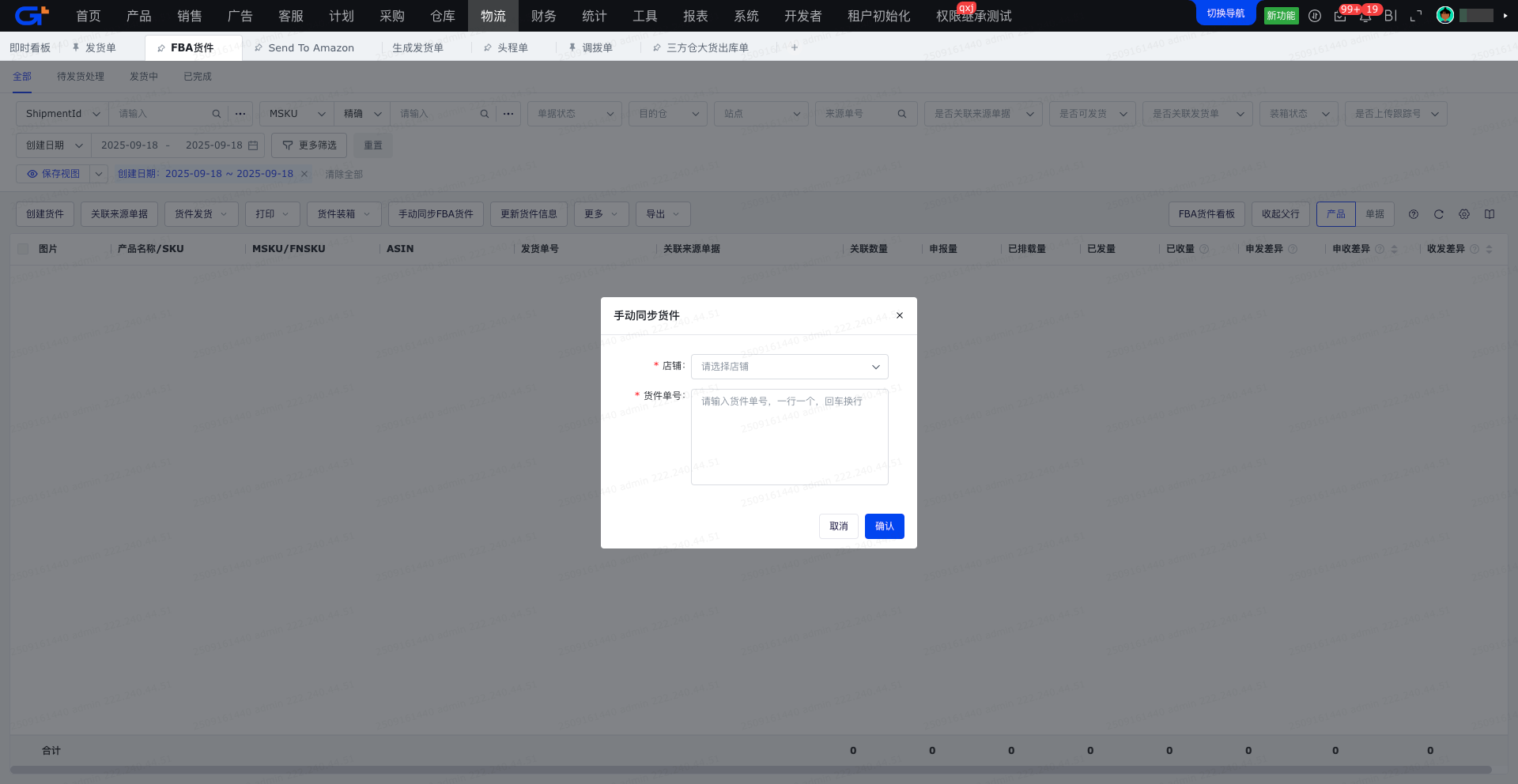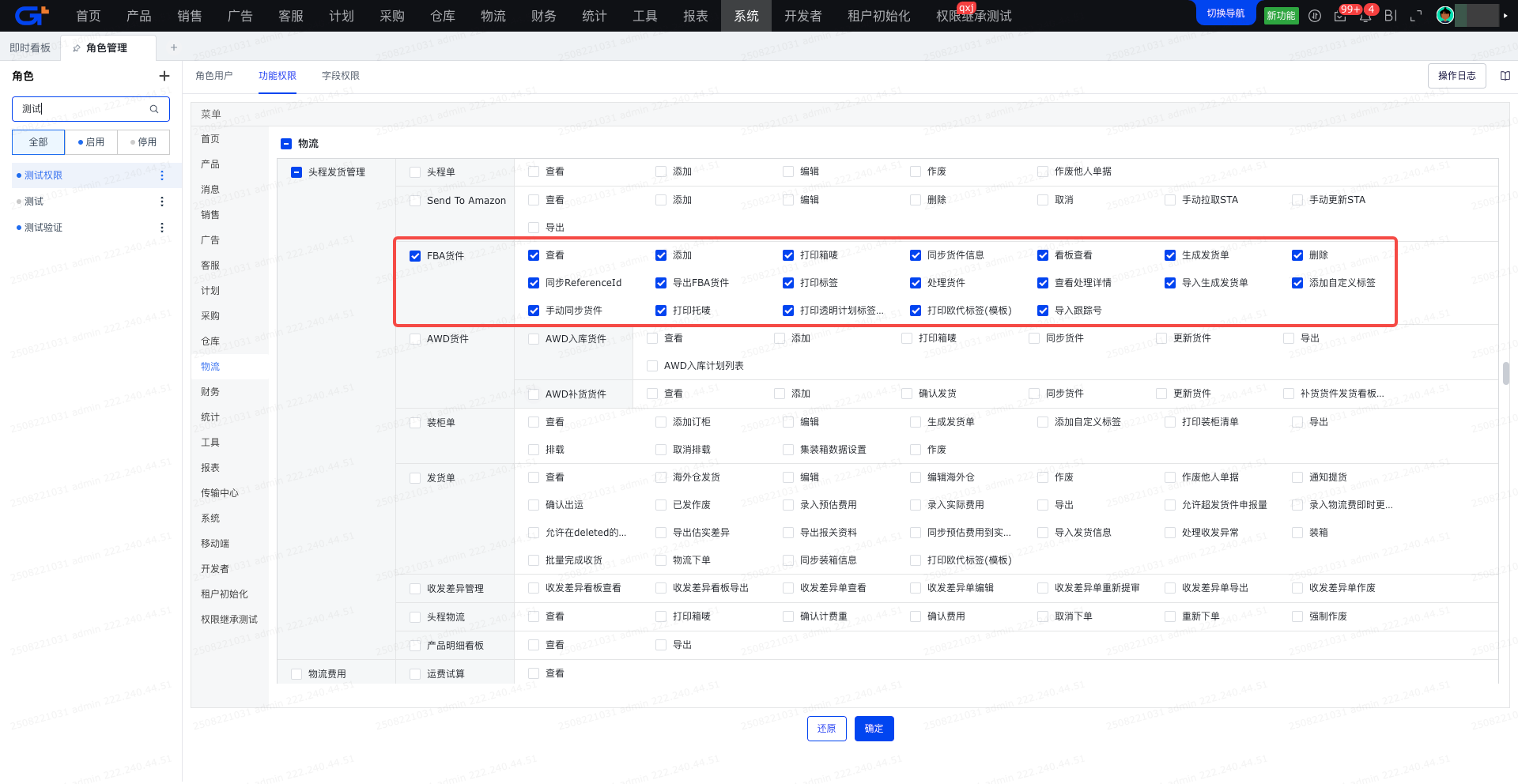 【系统】-【角色管理】-【功能权限】-【物流】-【头程发货管理】中开启FBA货件相关的功能权限