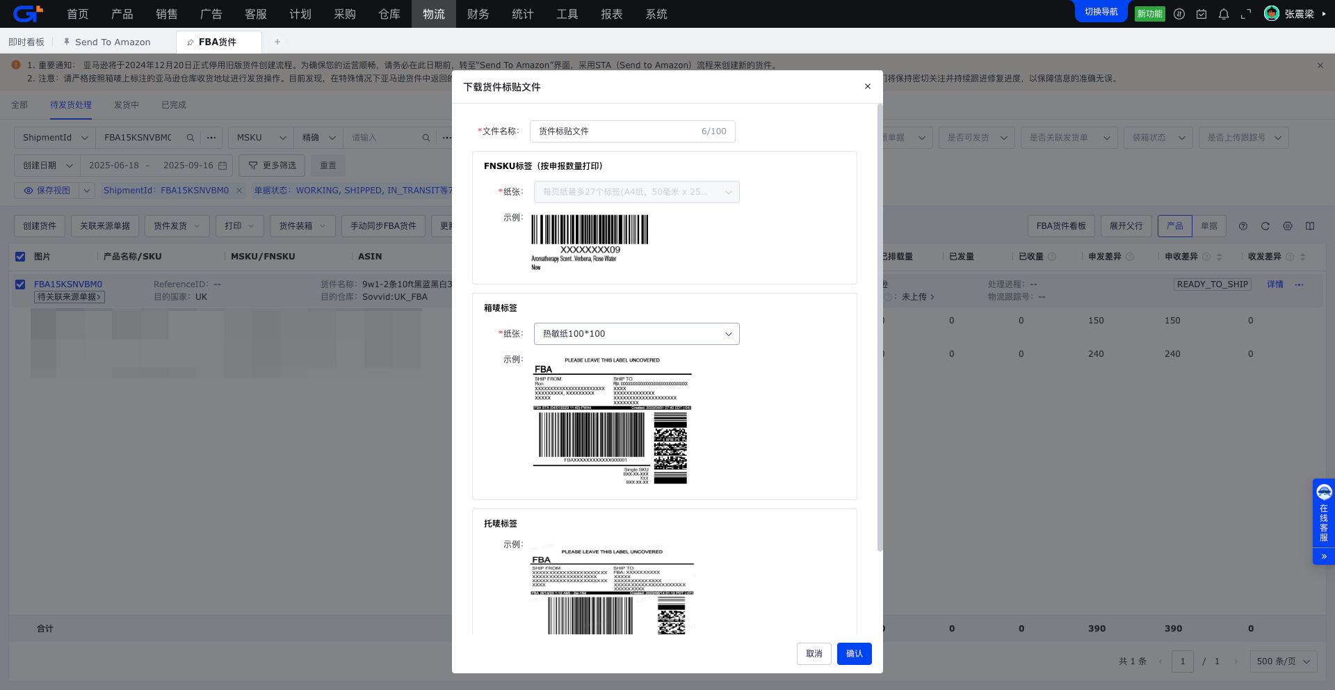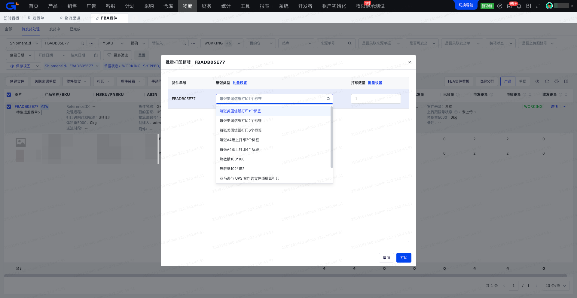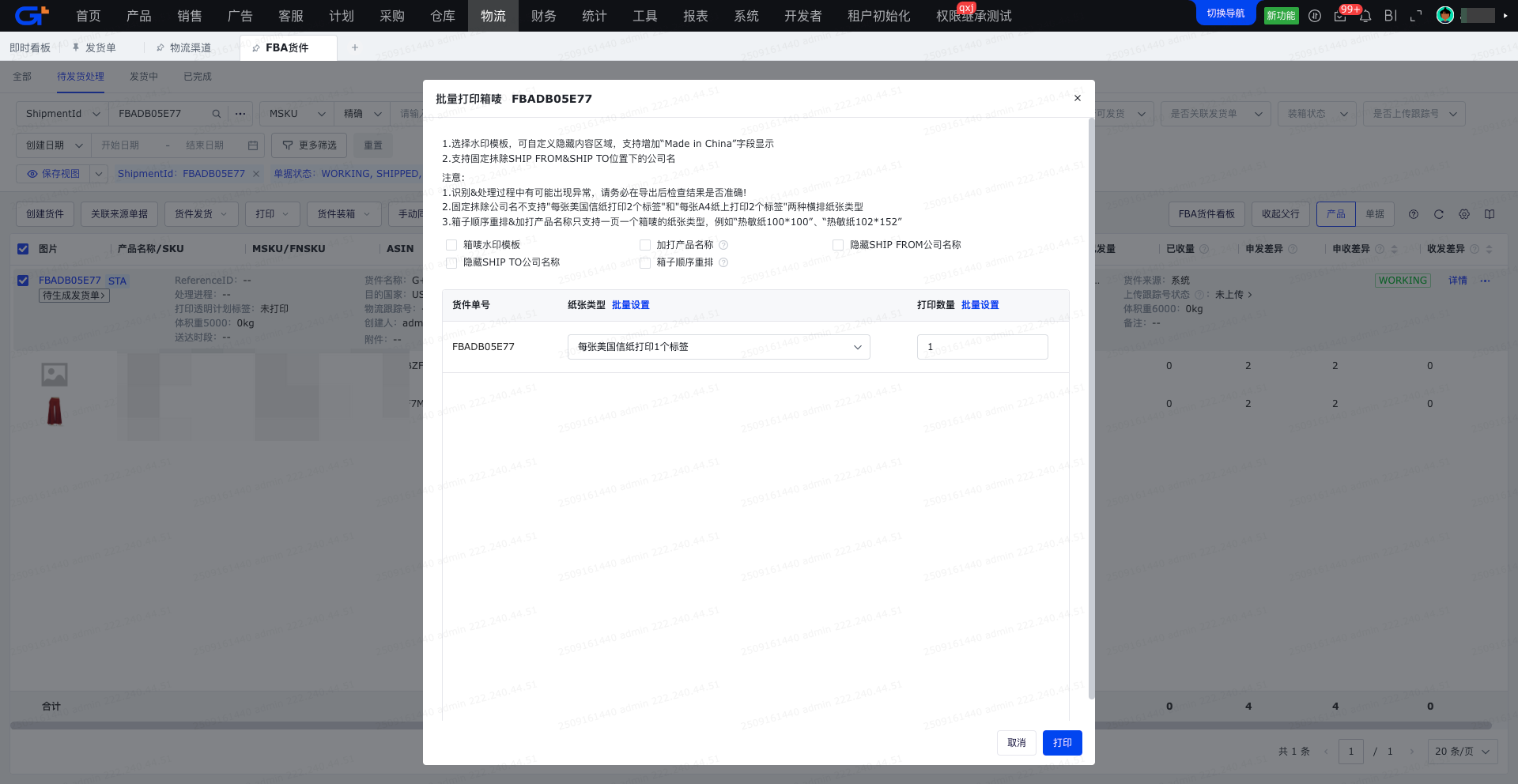 用于管理发往亚马逊FBA仓的货件,可以进行货件发货,查看货件收发情况,打印箱唛、导出货件信息等操作