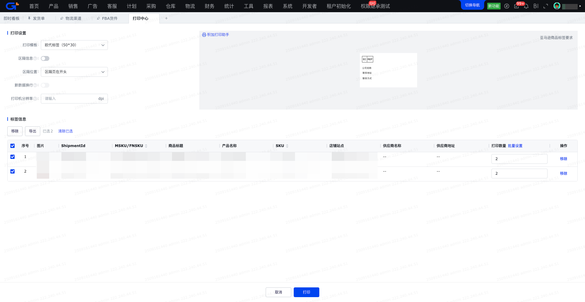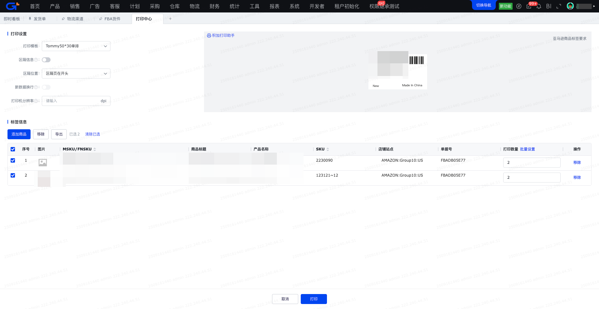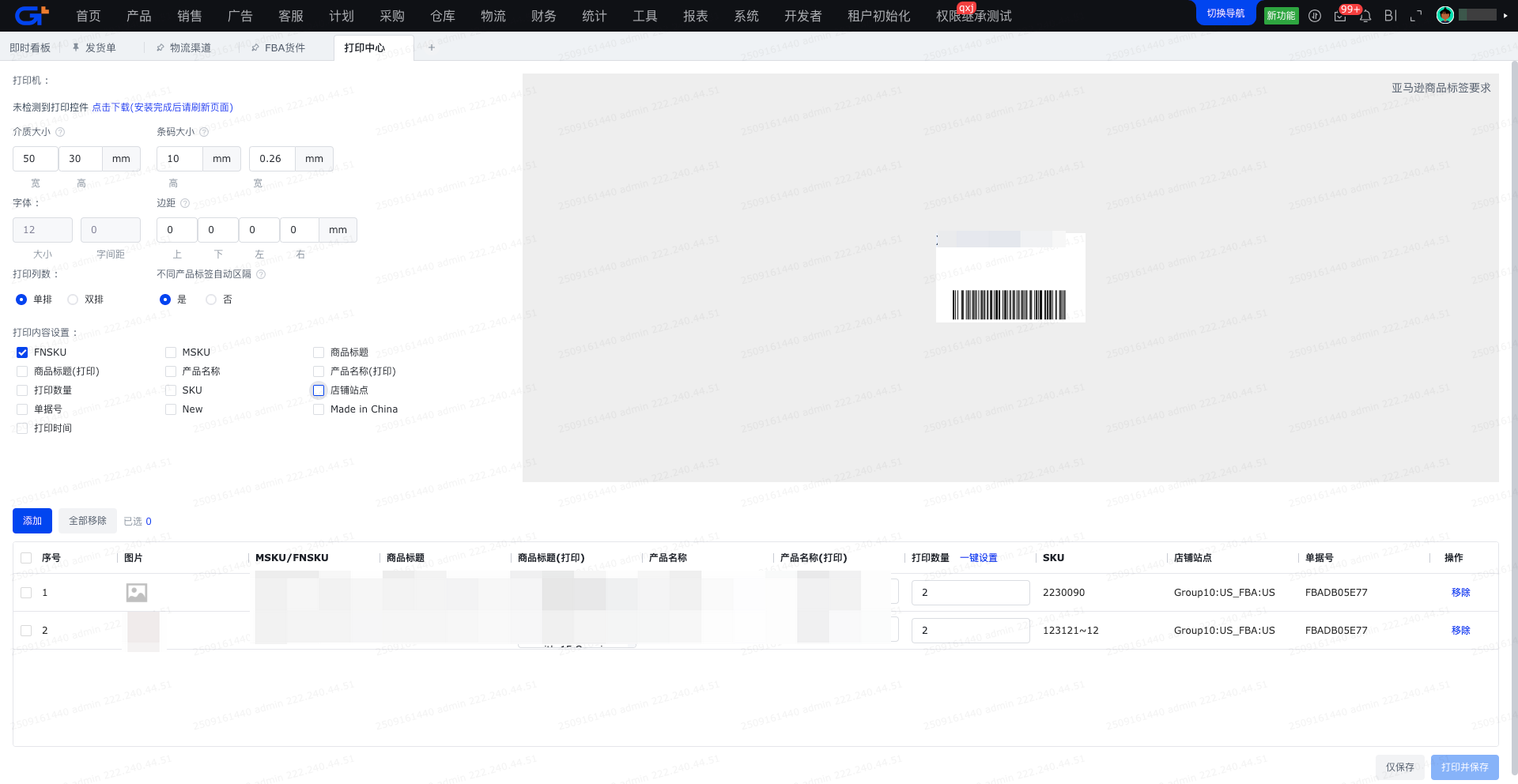 用于管理发往亚马逊FBA仓的货件,可以进行货件发货,查看货件收发情况,打印箱唛、导出货件信息等操作