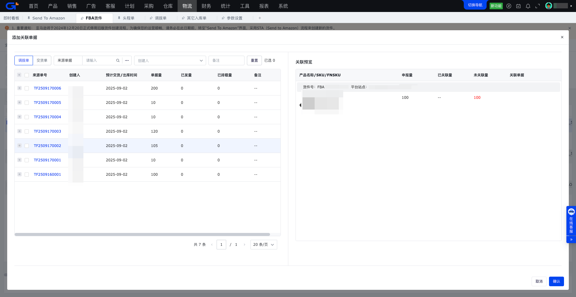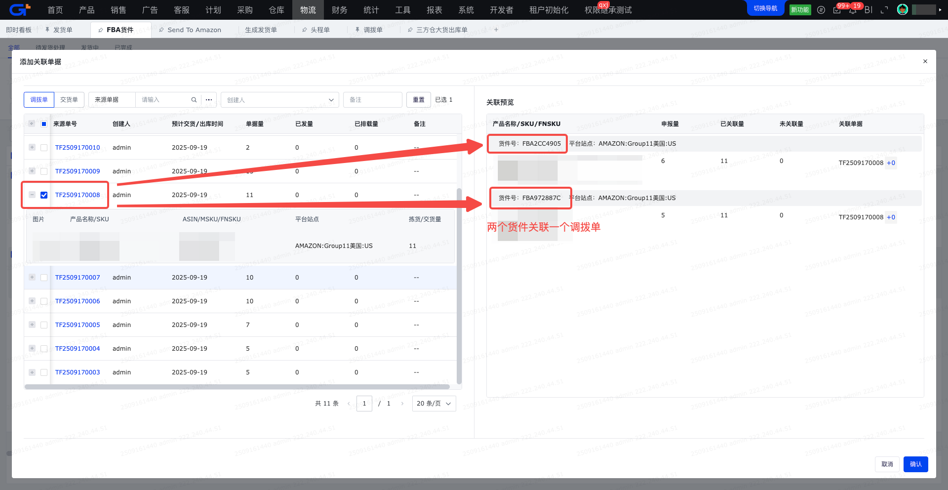 注意:关联单据一旦被货件绑定,将无法再被其他货件绑定