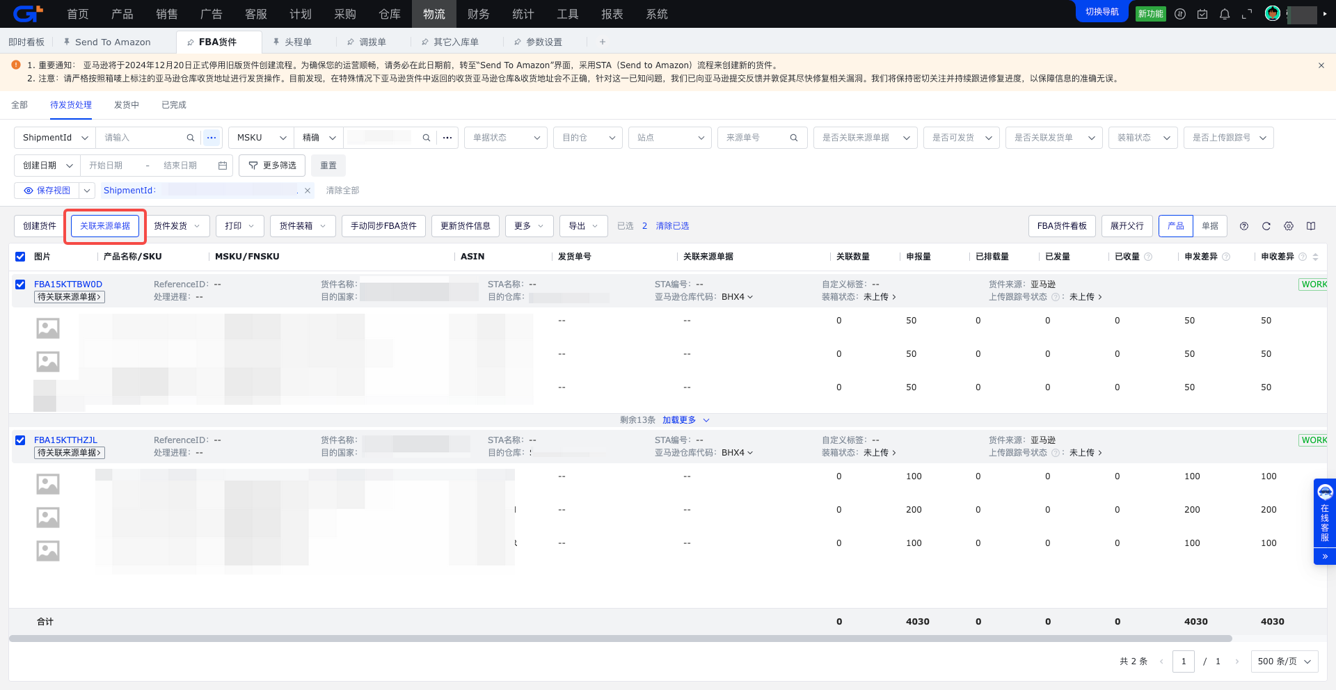 注意:亚马逊已于2024年12月20日正式停用旧货件创建流程,当前FBA货件都需要前往“Send To Amazon”界面,采用STA(Send to Amazon)流程来创建新的货件