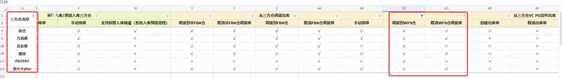 三方仓调拨平台仓,目前仅支持调拨FBA仓和WFS仓。