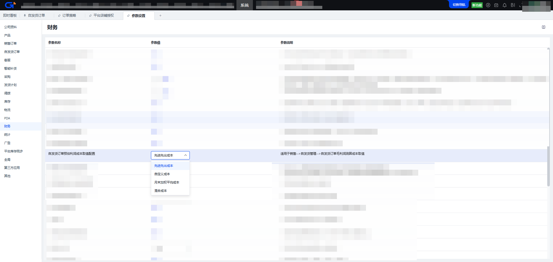 卖家根据自身需要在系统->参数设置->财务中设置自发货订单预估利润成本取值模式