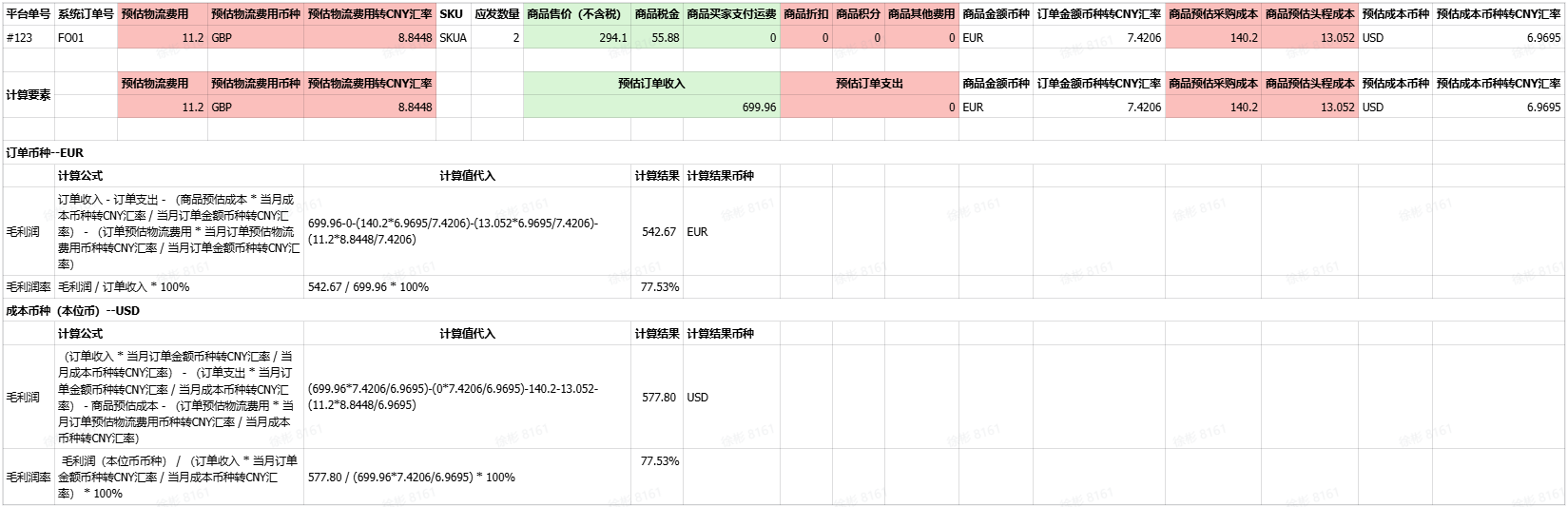这是因为在实际业务中,订单币种、成本币种、物流费用币种可能不一致,系统需要先将不同币种统一换算到同一口径后,再进行利润计算。