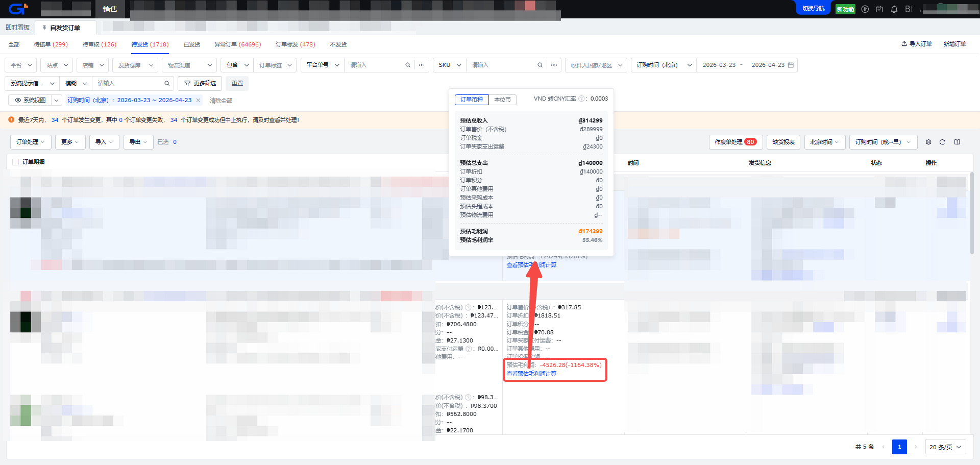 为解决上述问题,系统新增了自发货订单预估毛利润、预估毛利润率能力,帮助卖家在审核前、发货前以统一口径查看订单利润情况,用于辅助履约决策。