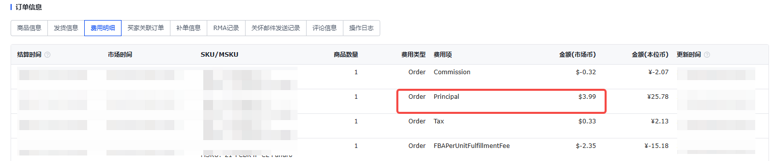 A:是根据商品售价和费用明细中的本金Principal进行对比。相等——不含税,不相等——含税。