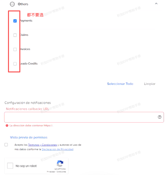 页面最下方的Notificaciones callbacks URL填写 https://platintegration.apist.gerpgo.com
