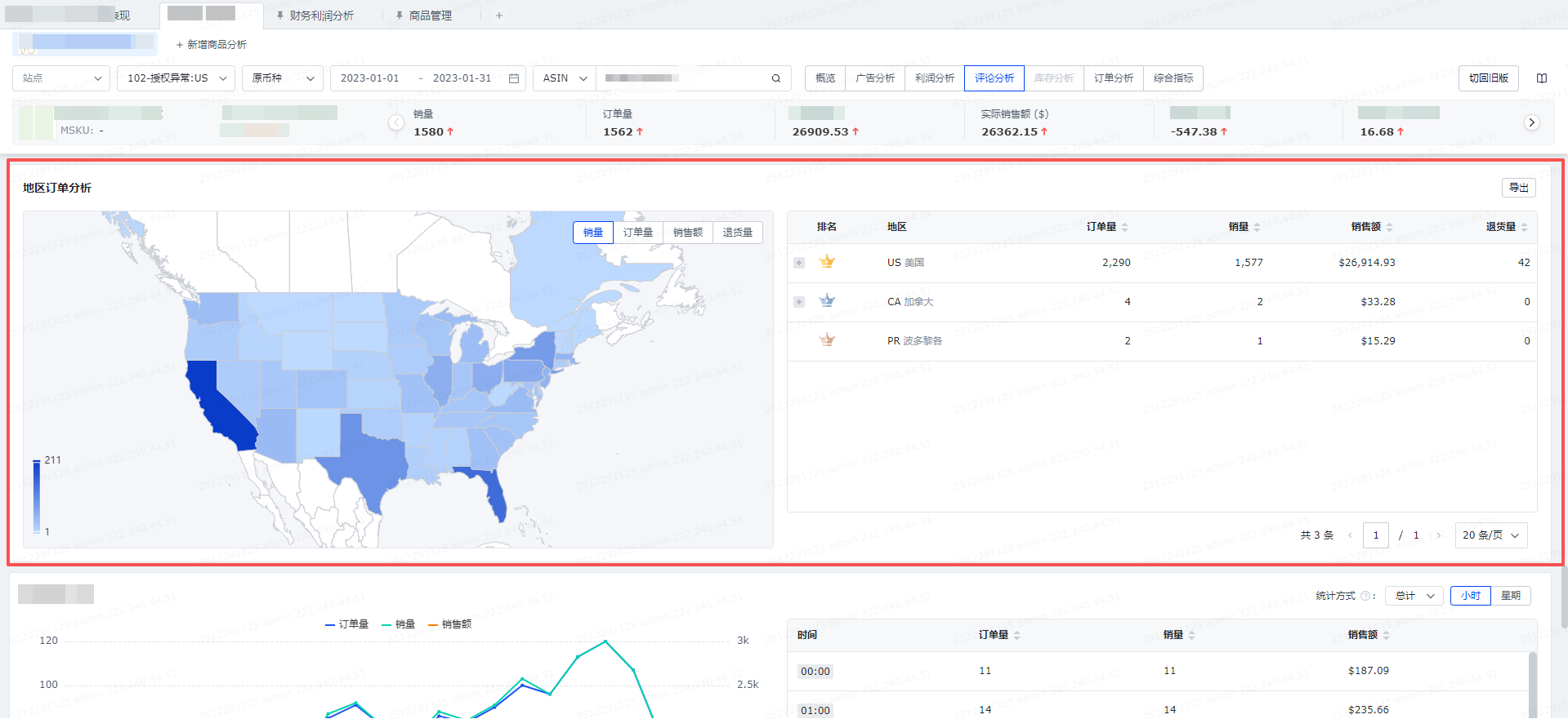 界面入口路径:统计——>销售分析——>ASIN/父ASIN/SKU/MSKU——>分析