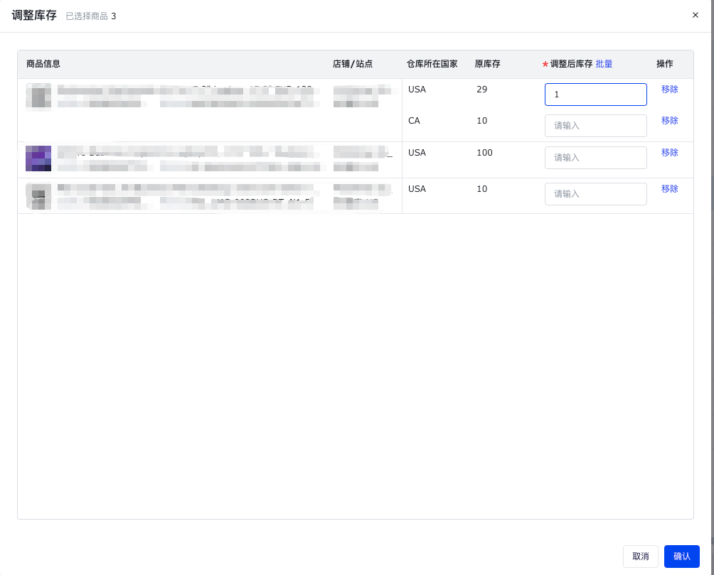 勾选商品点击【批量调库存】进行批量编辑