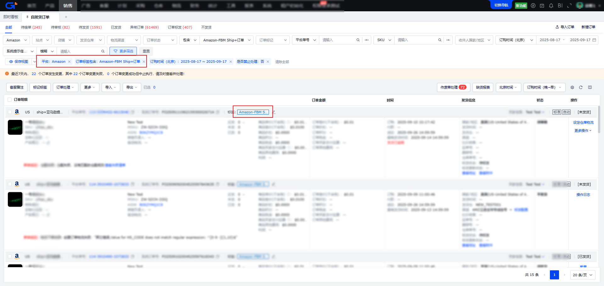 在自发货订单列表,可以通过“Amazon-FBM Ship+订单”标签快速筛选。