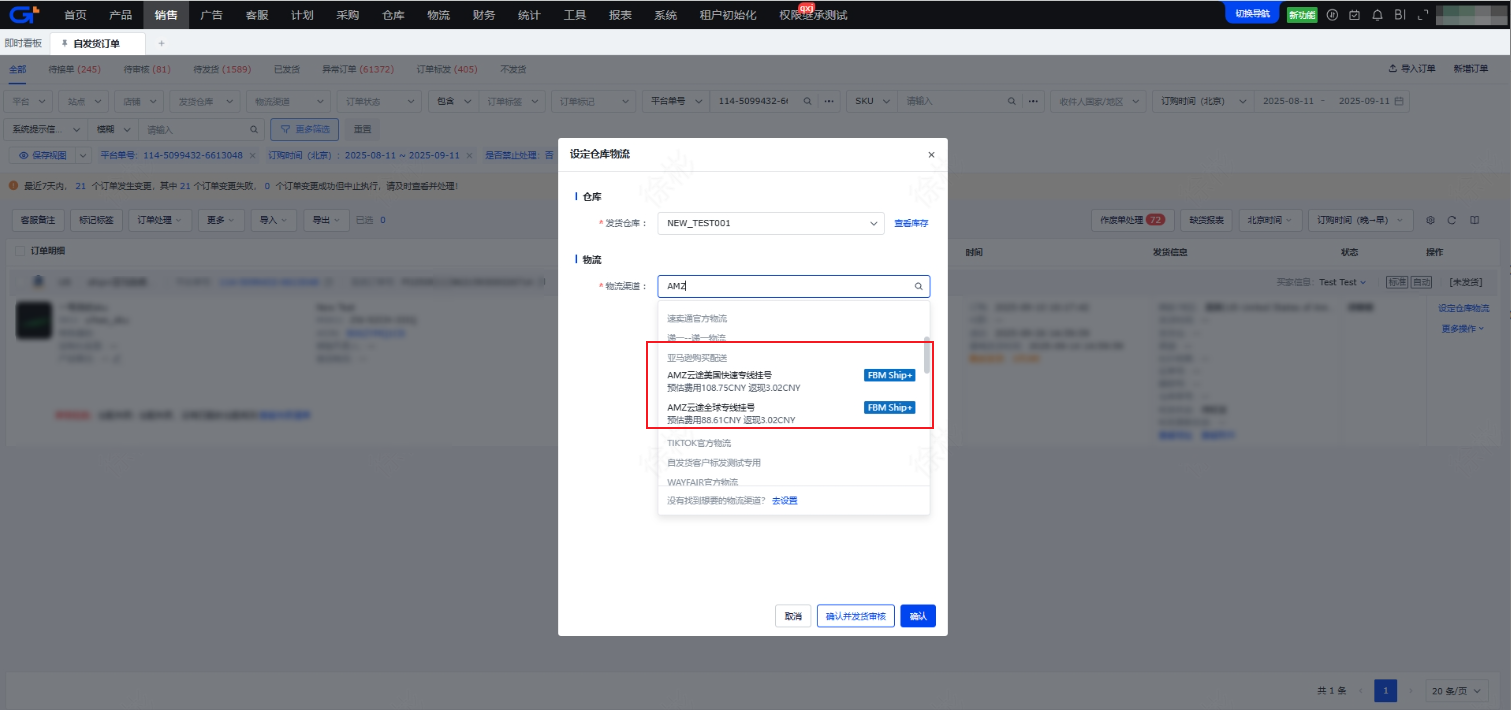 FBM Ship+订单的履约流程与普通FBM订单履约流程并无差别,区别仅在于手工为订单分配发货仓库和物流渠道时,能够快速识别出支持FBM Ship+履约的渠道。