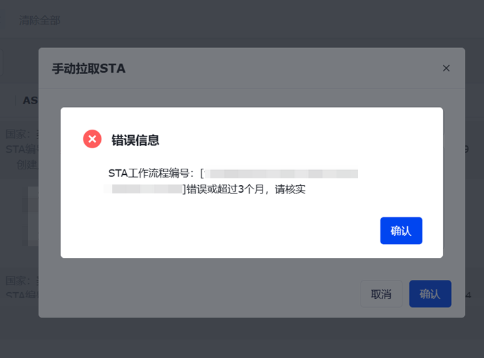 Q17:点击同步STA,页面提示:STA工作流程编号:[xxxxxxxxxxxxxxxxxx]错误或超过3个月,请核实。但是这个STA货件是没有超过3个月,为什么有这个报错?