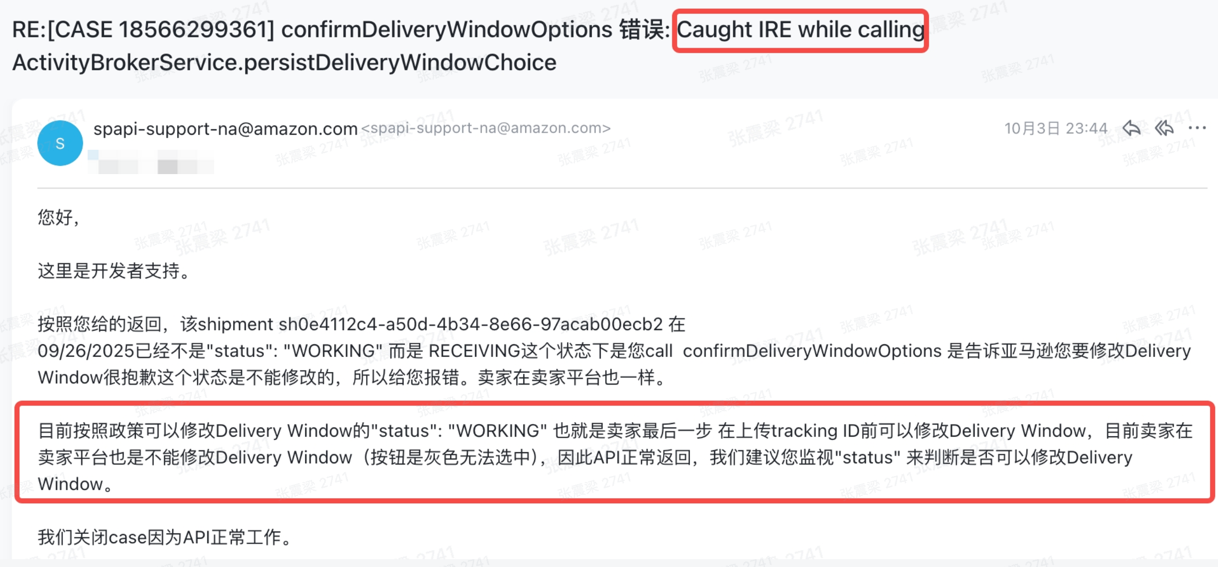 Q17:修改送达时段报错:"message":"ERROR: Caught IRE while calling ActivityBrokerService.persistDeliveryWindowChoice","severity":"ERROR"}]
