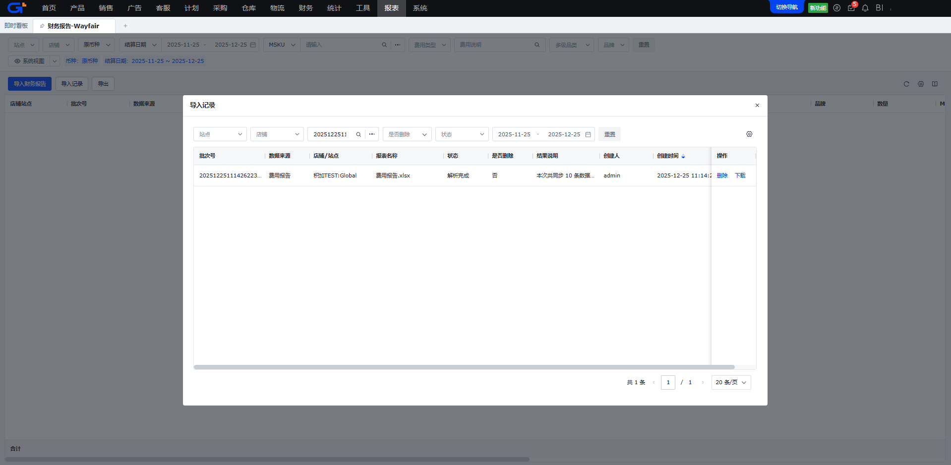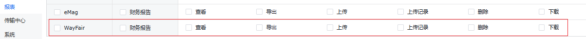 注意:Wayfair财务报告默认授权给了系统管理员,如需使用,请联系系统管理员开启菜单权限(路径:系统-菜单权限-功能权限-报表-Wayfair-财务报告)。