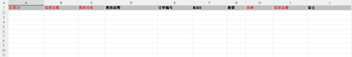 费用报告-标准导入模板