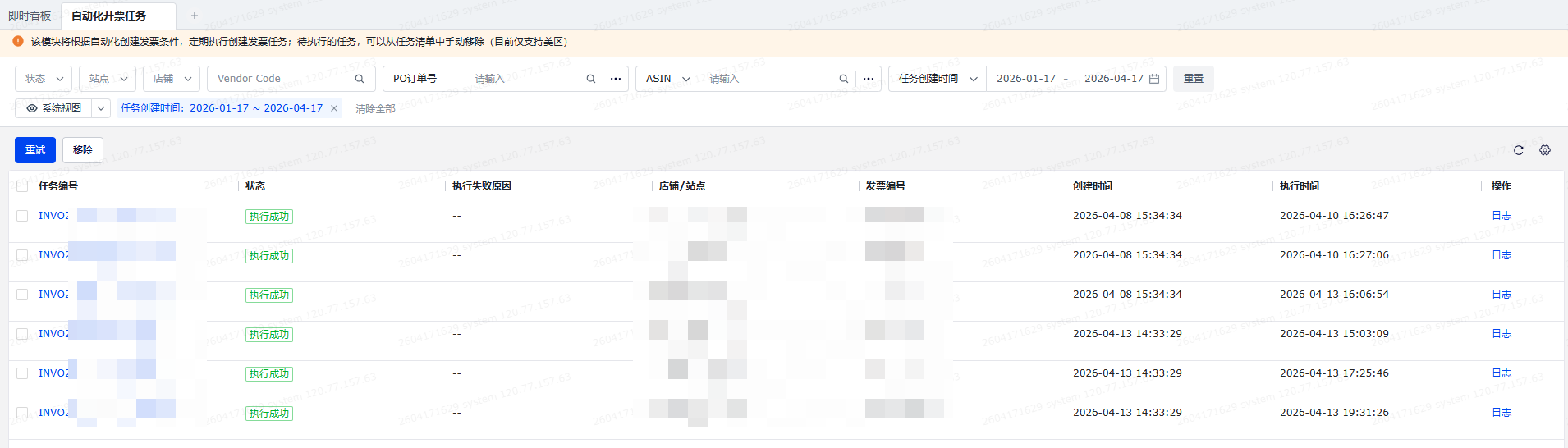需要提前配置的原因:亚马逊支持以ASN维度开票或者以PO维度开票,系统走自动化需要内置一个前提规则