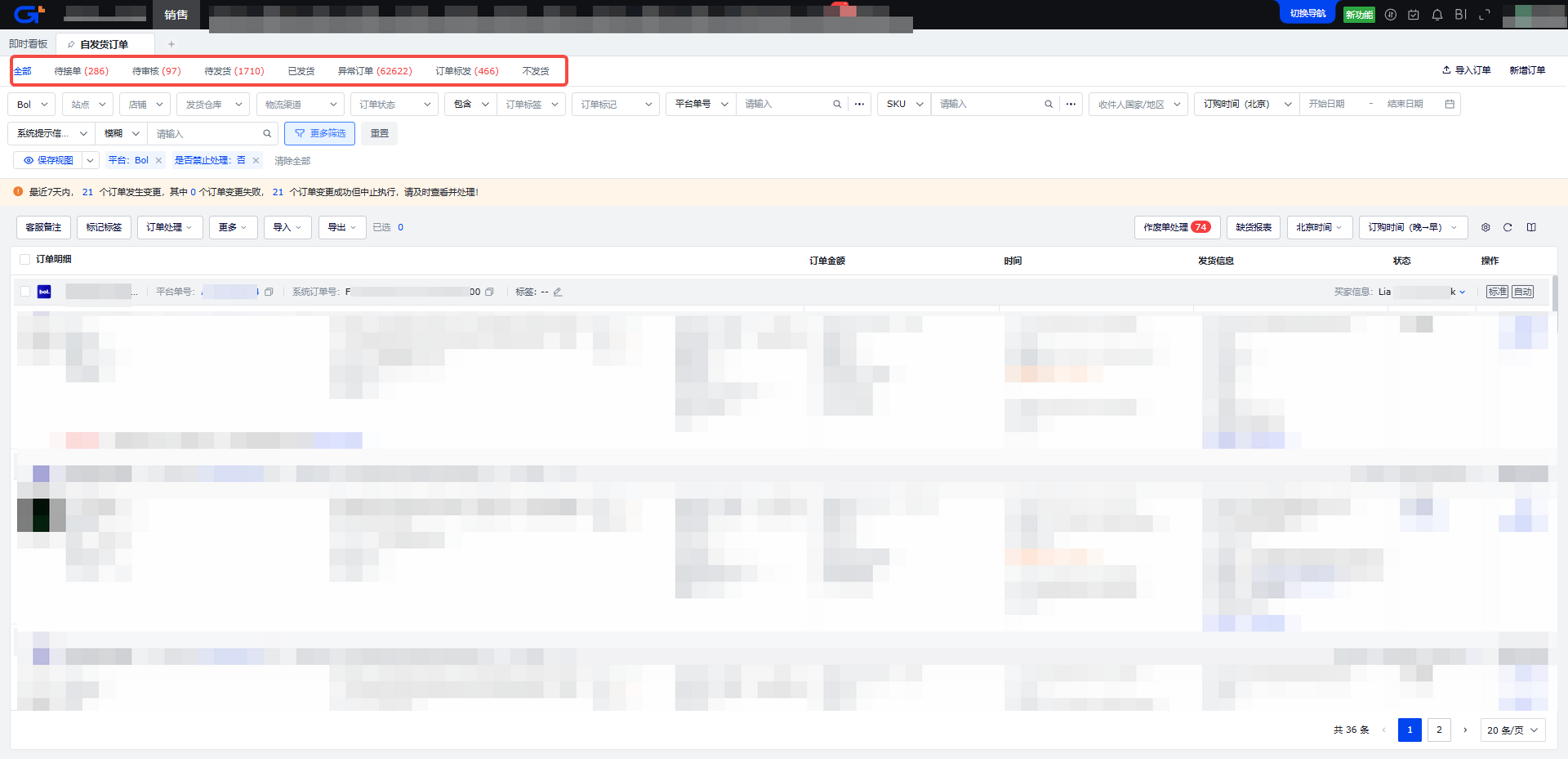 不同平台的履约都需要先完成前置设置条件“店铺授权->基础设置->订单策略配置”,大部分平台的“订单发货”流程相同,少数平台会有不同,例如:Wildberries