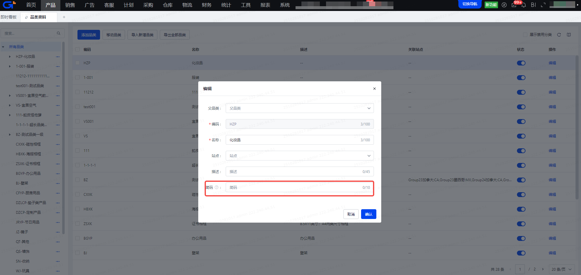 点击【添加sku】按钮or产品右侧“...”,弹出产品编辑页面,编辑产品相关信息后点击【确定】完成创建