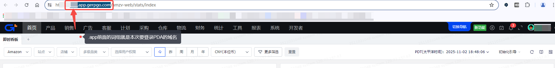 首次登录需要配置域名:登录系统ERP网址.app前面的词组,例如jijiatest.app.gerpgo.com ,输入jijiatest即可,有问题可以看以下截图。