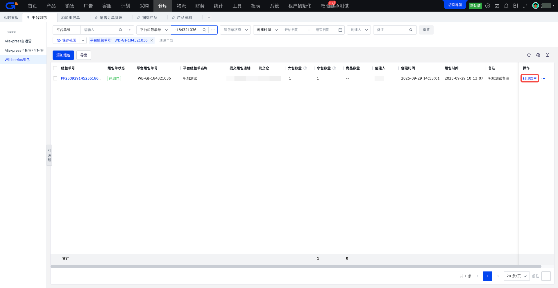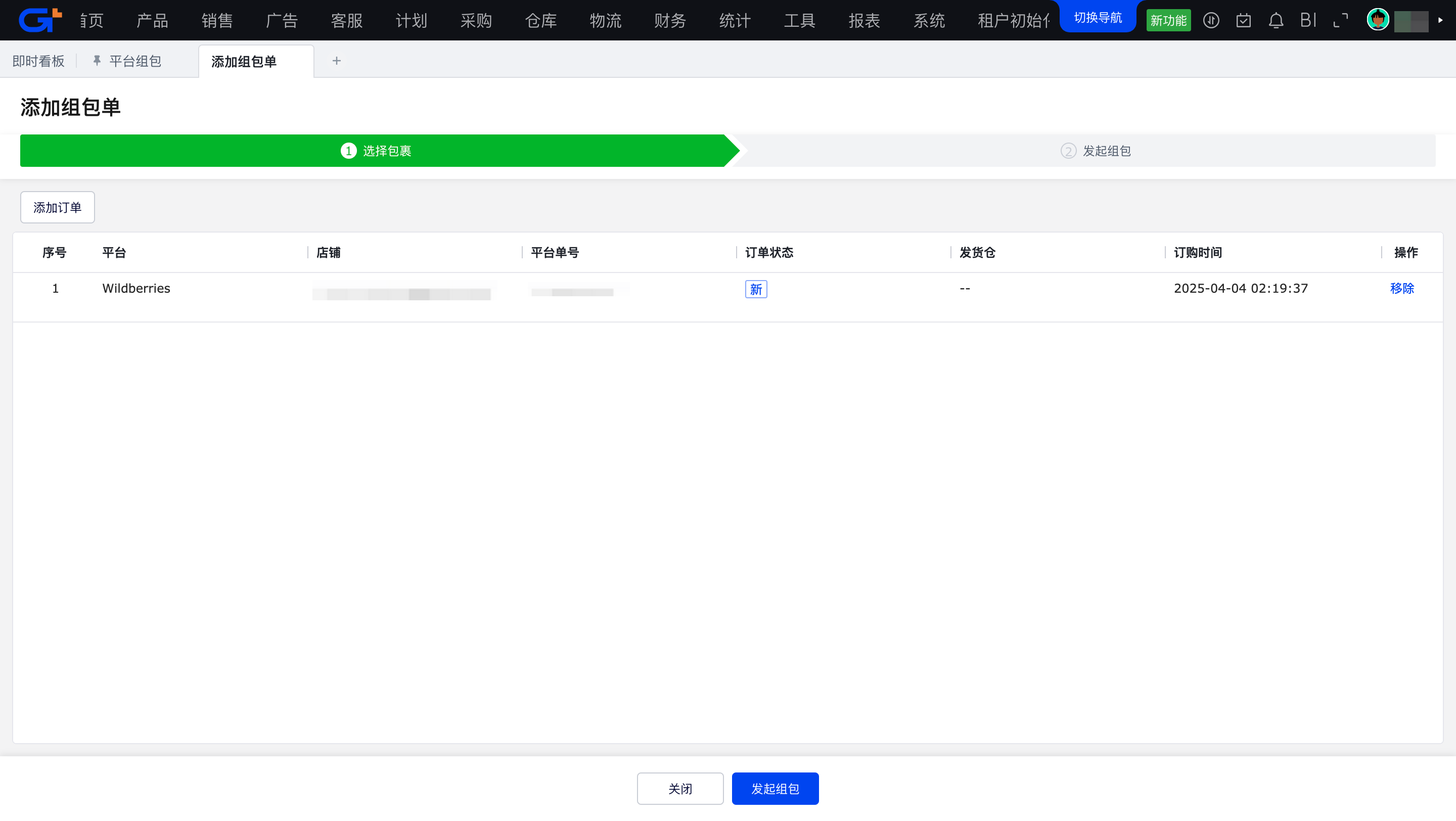 Wildberries平台需要在积加先完成组包操作(对应WB后台的创建供货订单操作),组包完成后才能将订单推送给仓库进行打包发货。