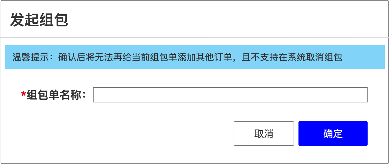 选择好需进行组包的包裹单后,点击【发起组包】按钮,进入下一步