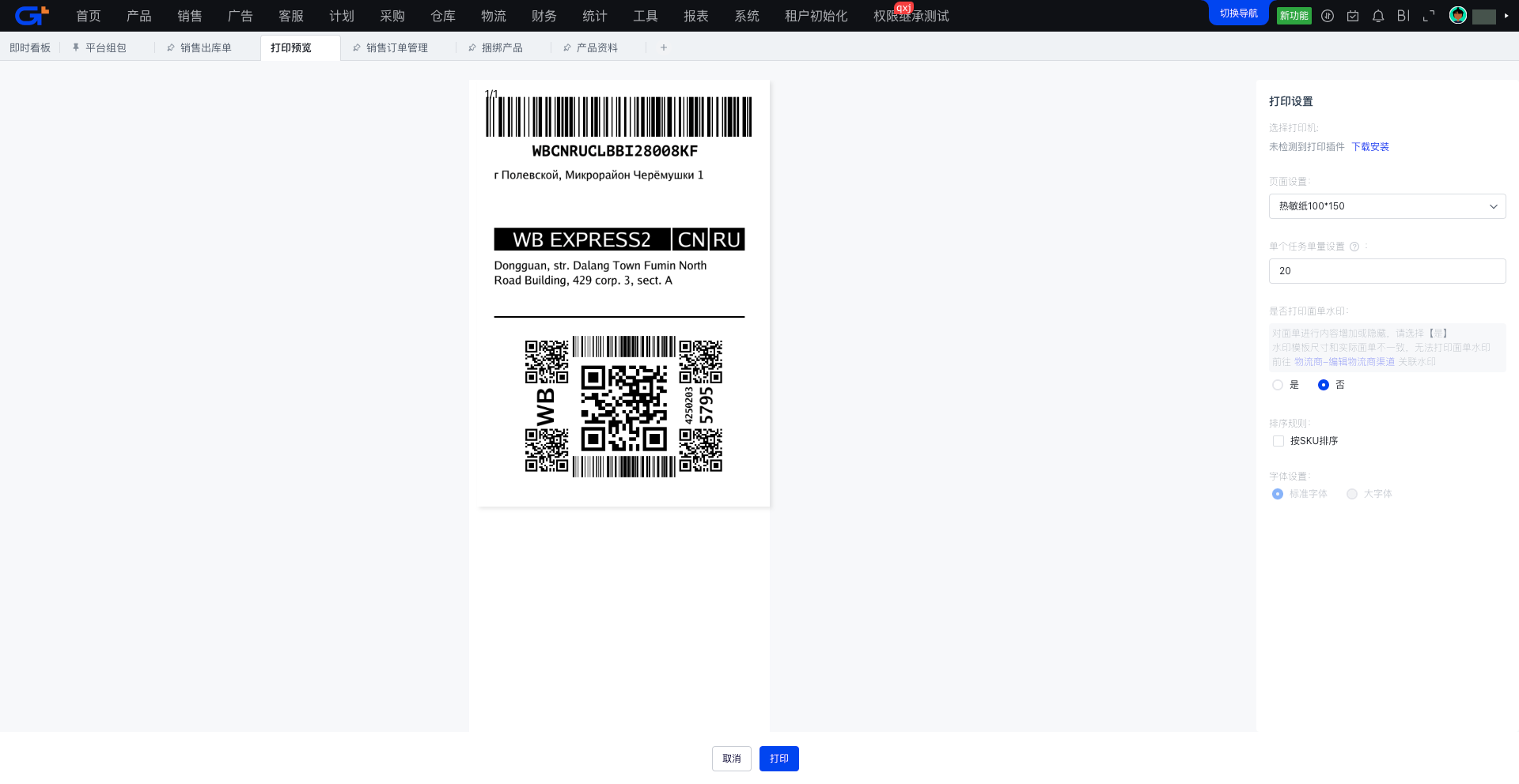 4.组包成功后可以打印供货订单二维码,将二维码提供给海外仓