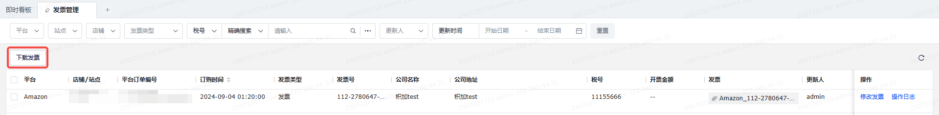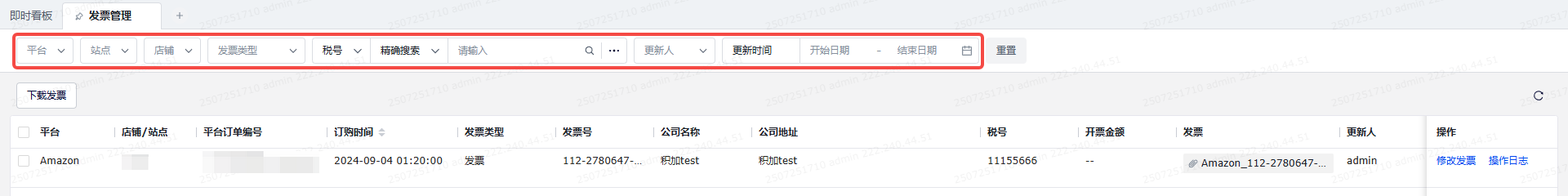 - 平台/站点/店铺:搜索对应 平台/站点/店铺 的发票
