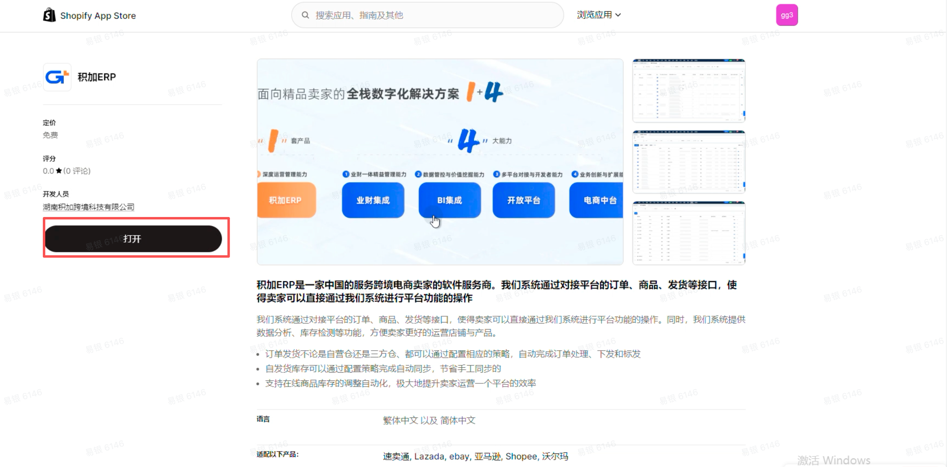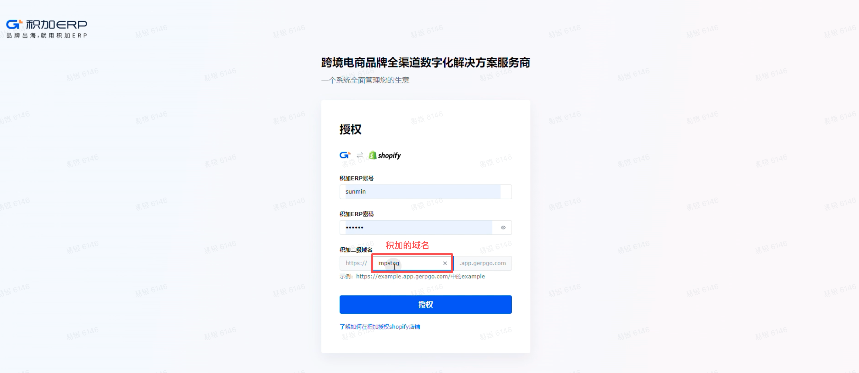 点击授权,跳转到积加ERP后台页面,即授权成功