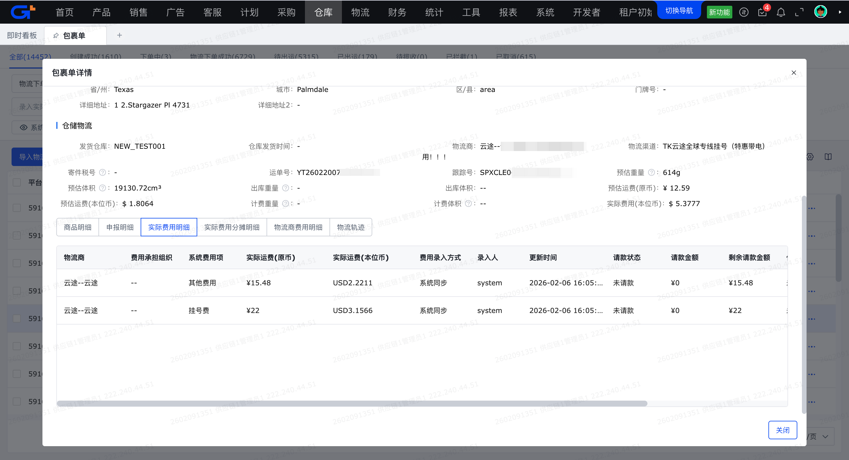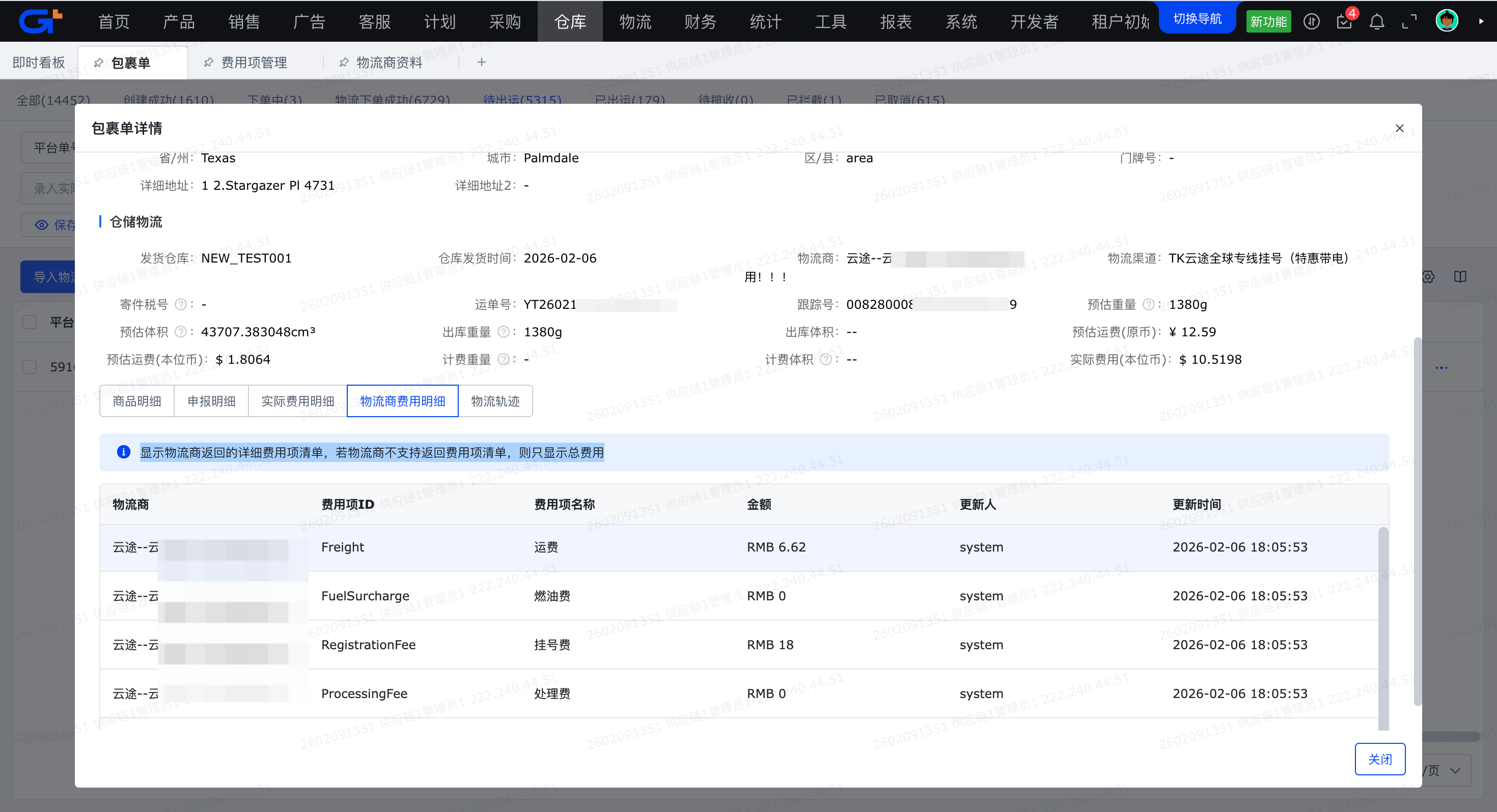 - 系统费用项: 指根据物流商接口返回的费用项名称自动映射到【财务-费用项管理-物流-自发货物流】中的费用项,若名称不匹配,此时默认显示【其他费用】