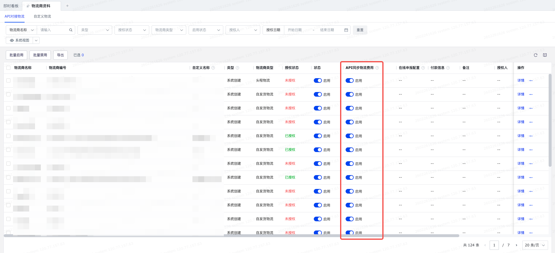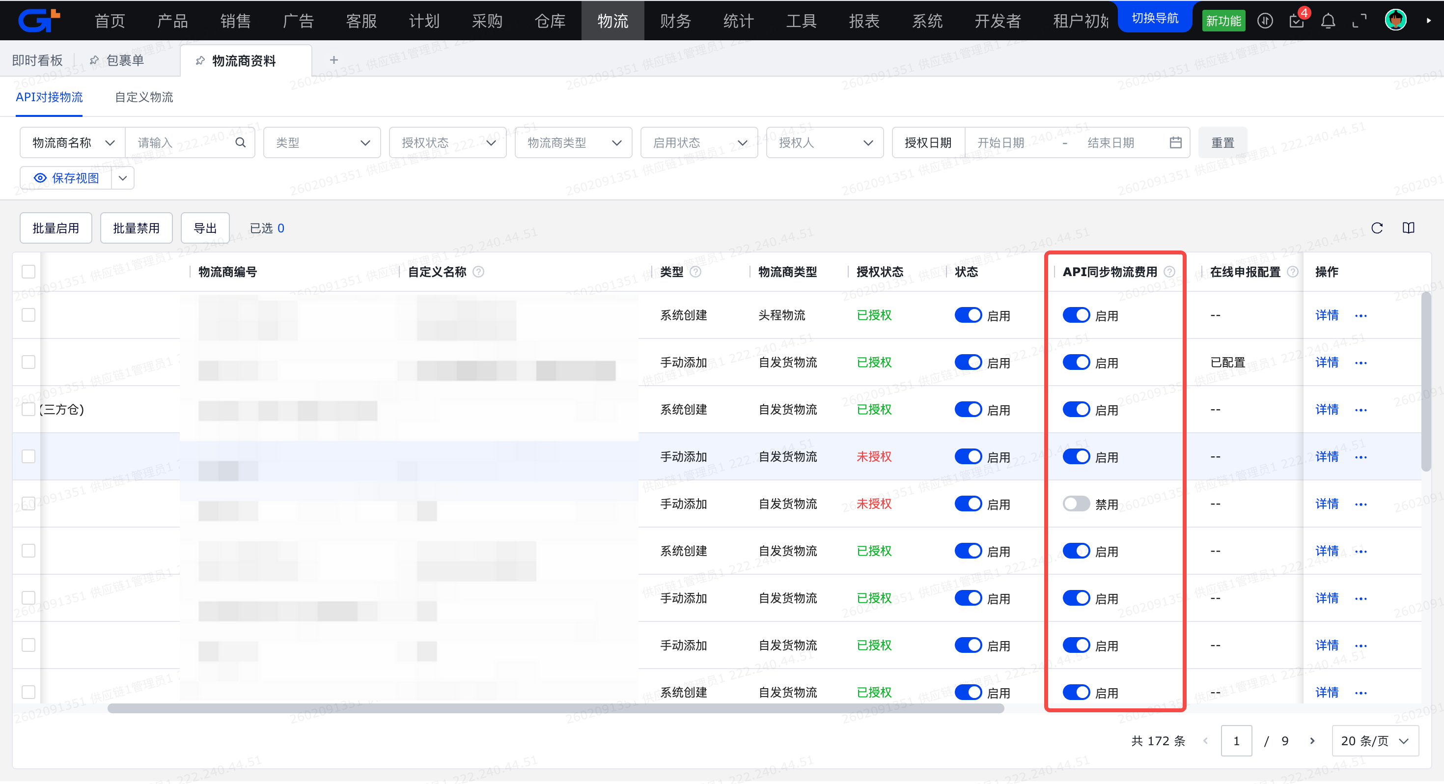 前提:需在【物流商资料】中开启“API同步物流费用”