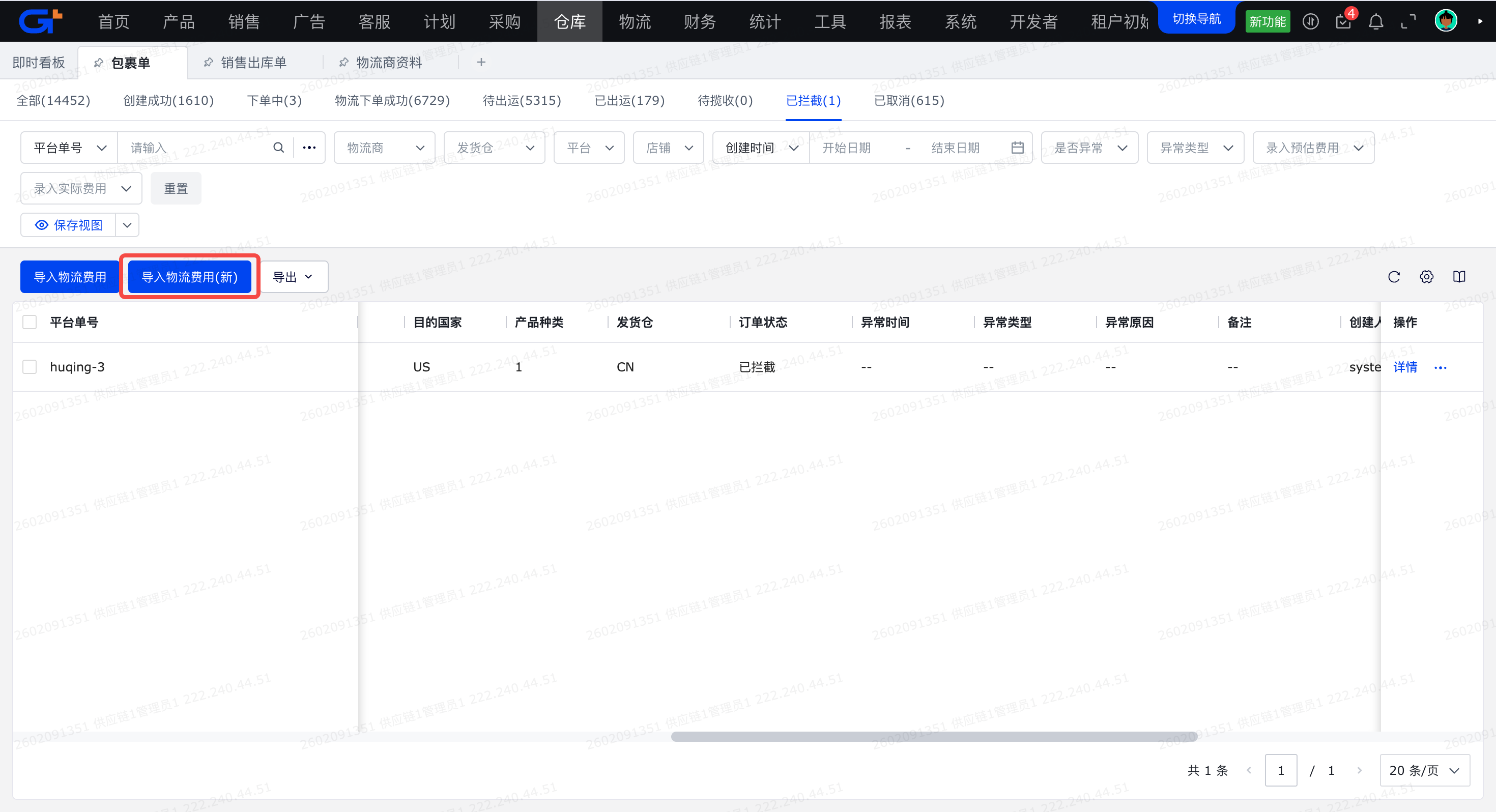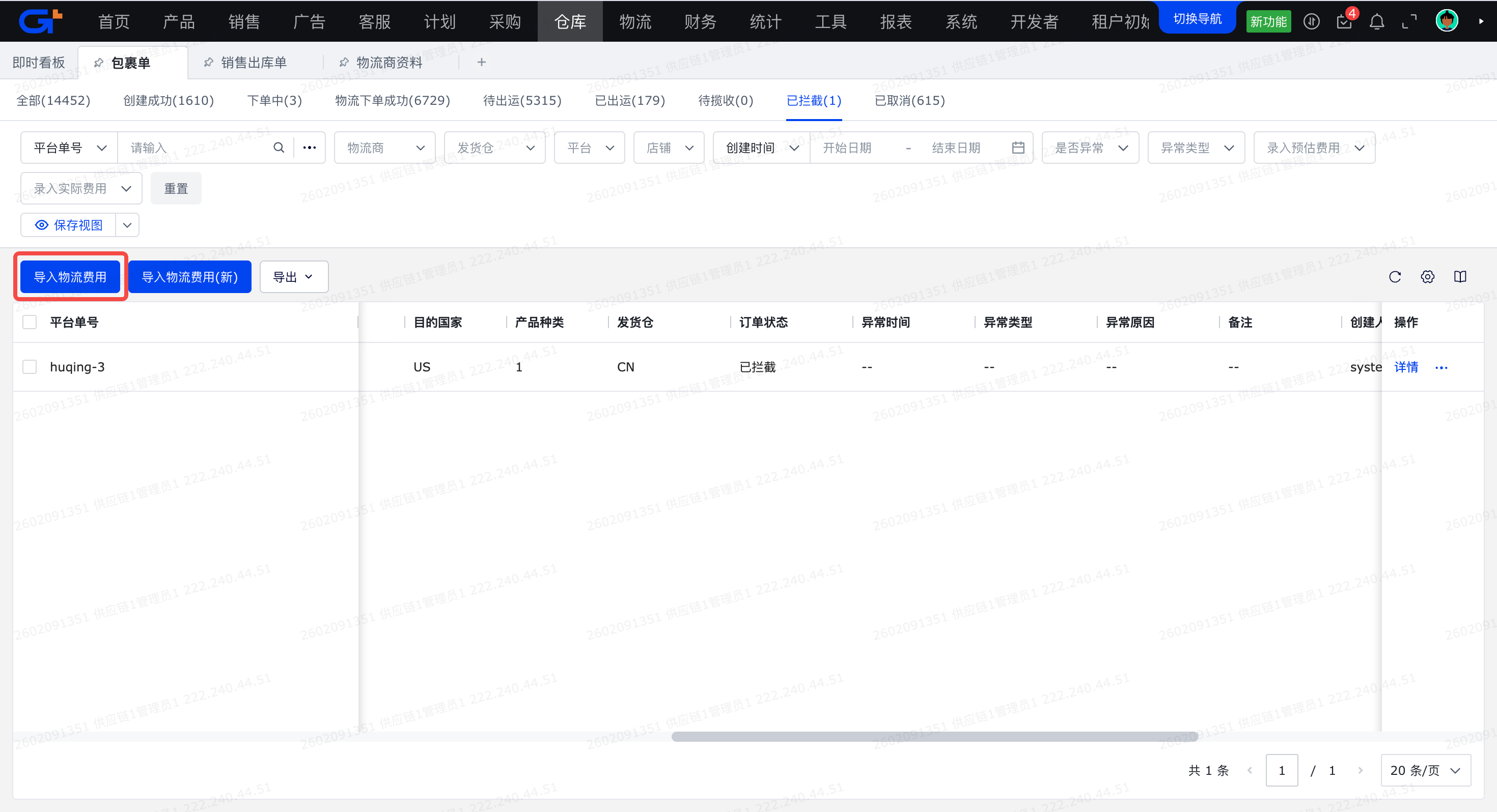 4、不受物流商的“物流商费用同步开关”限制,无论是否开启都可以导入,导入后包裹单不再自动更新,只能手动导入更新