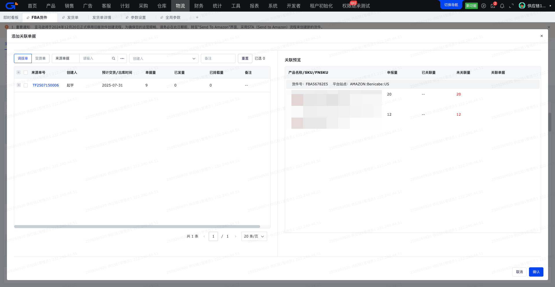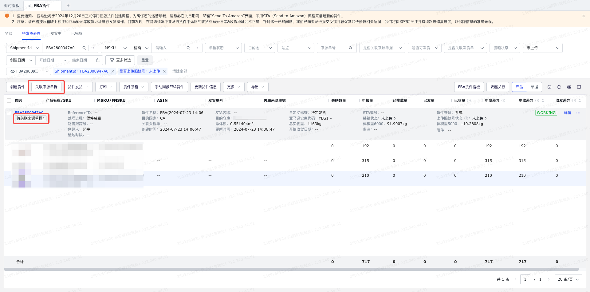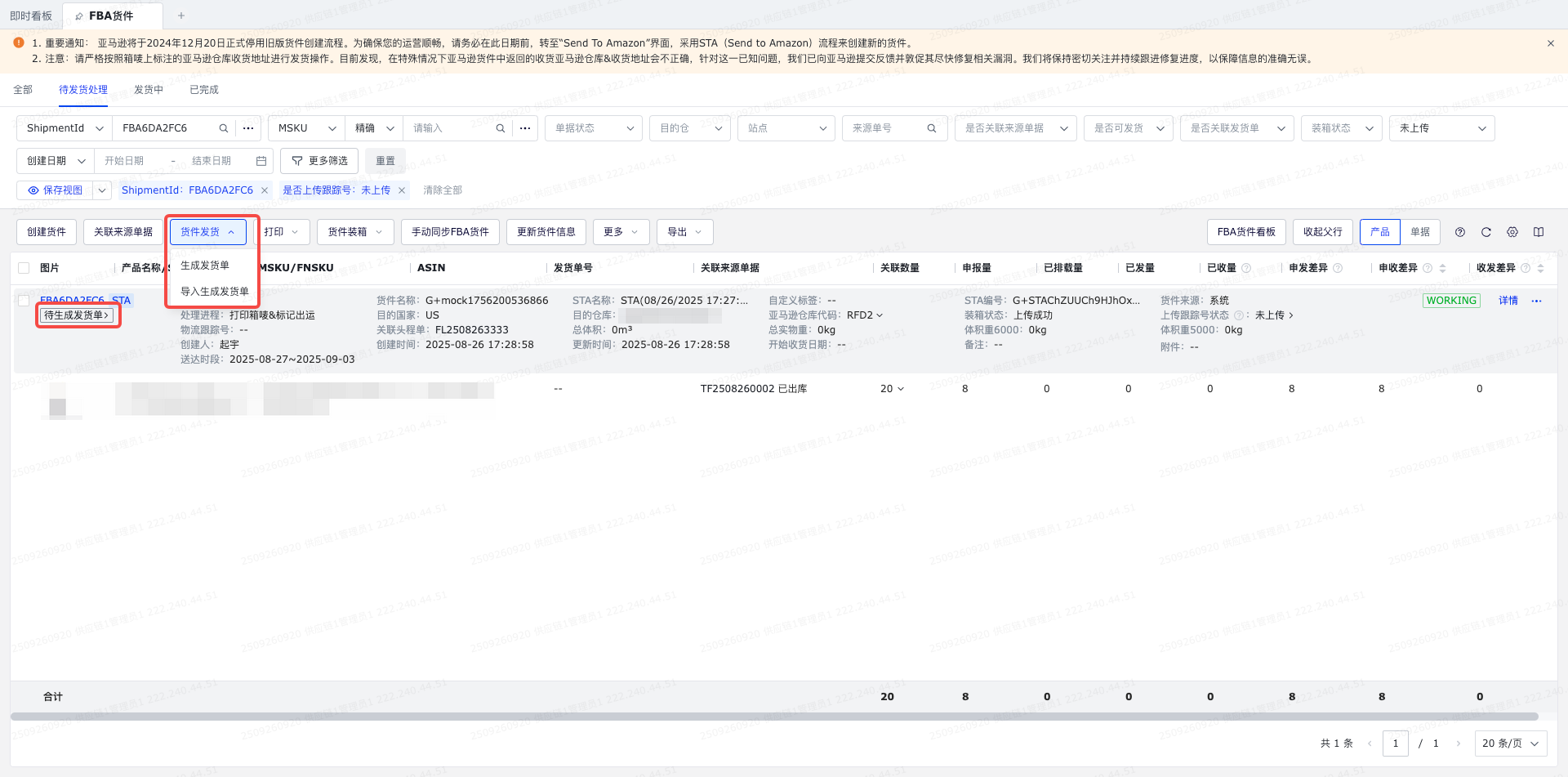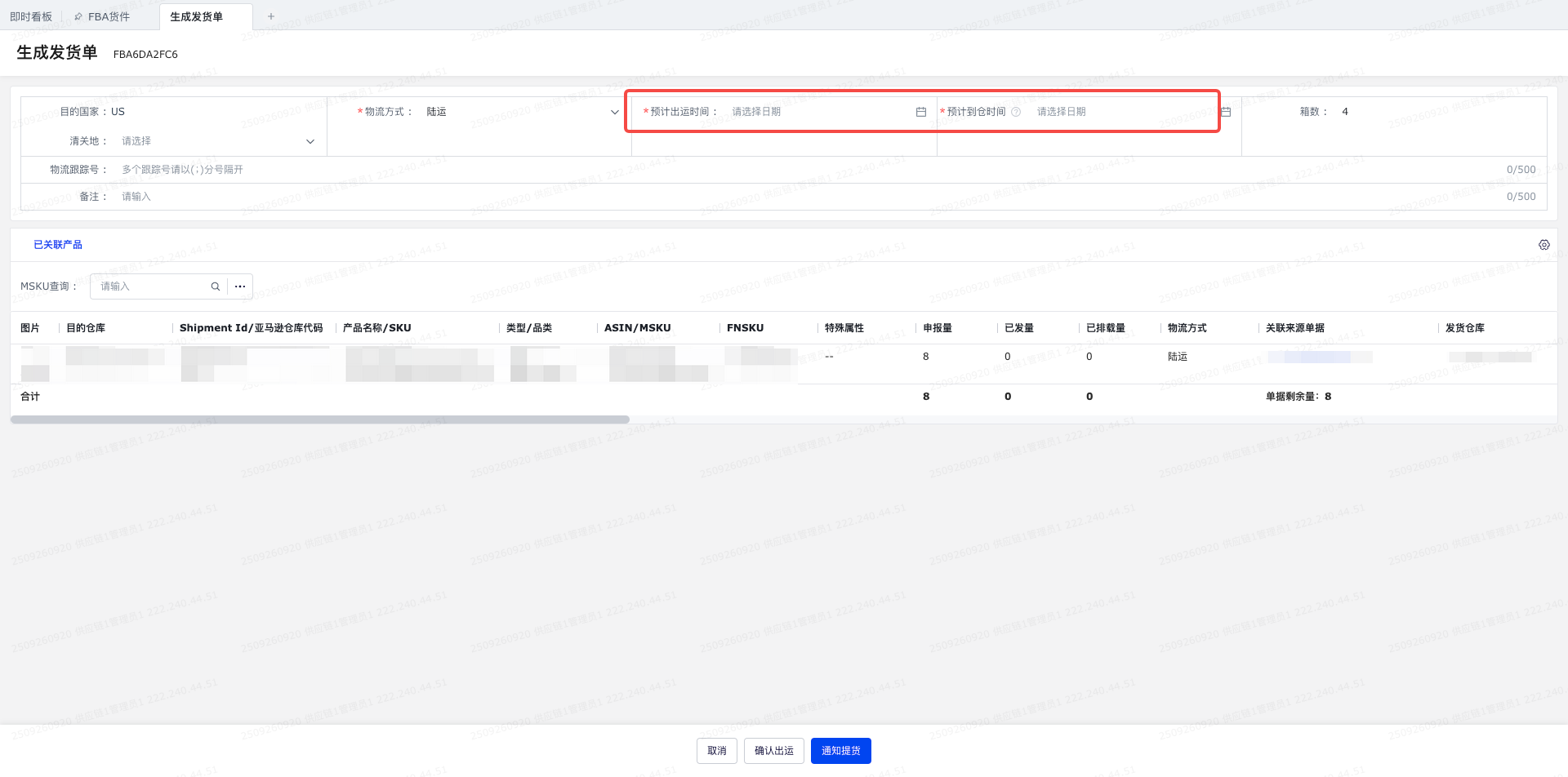 发货单确认出运后,系统中直采FBA仓操作发货流程结束,等待FBA仓接收货件