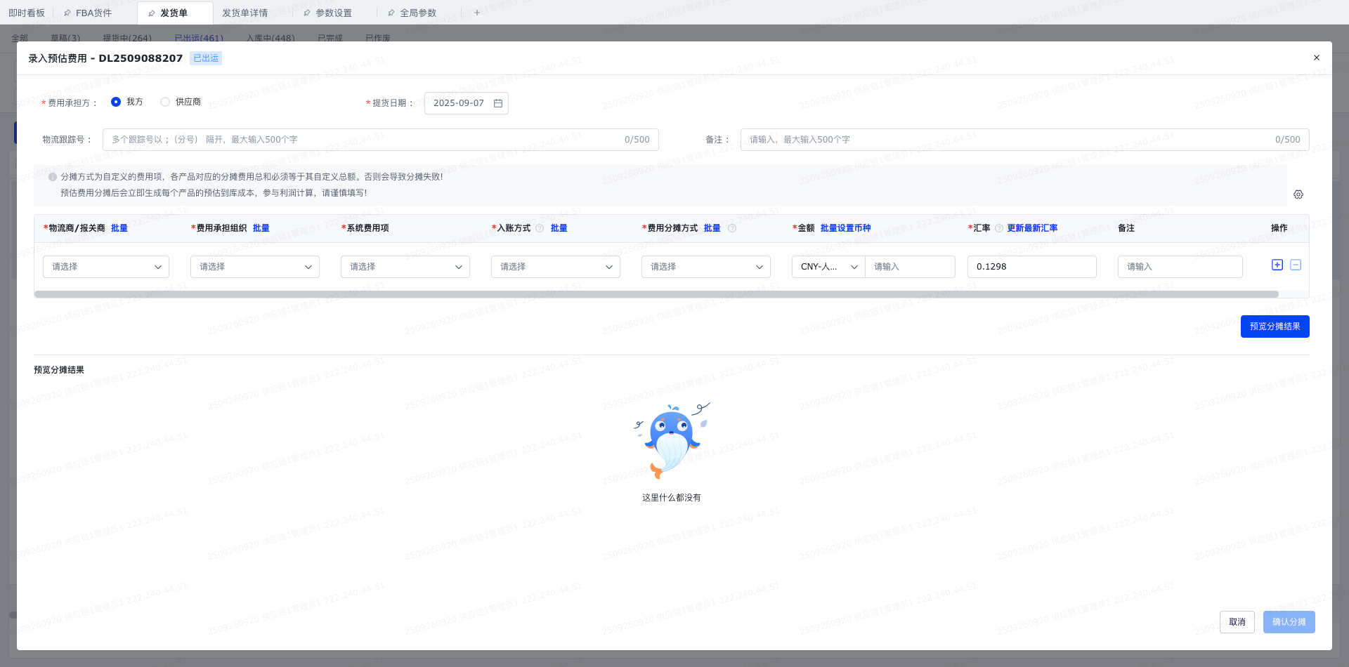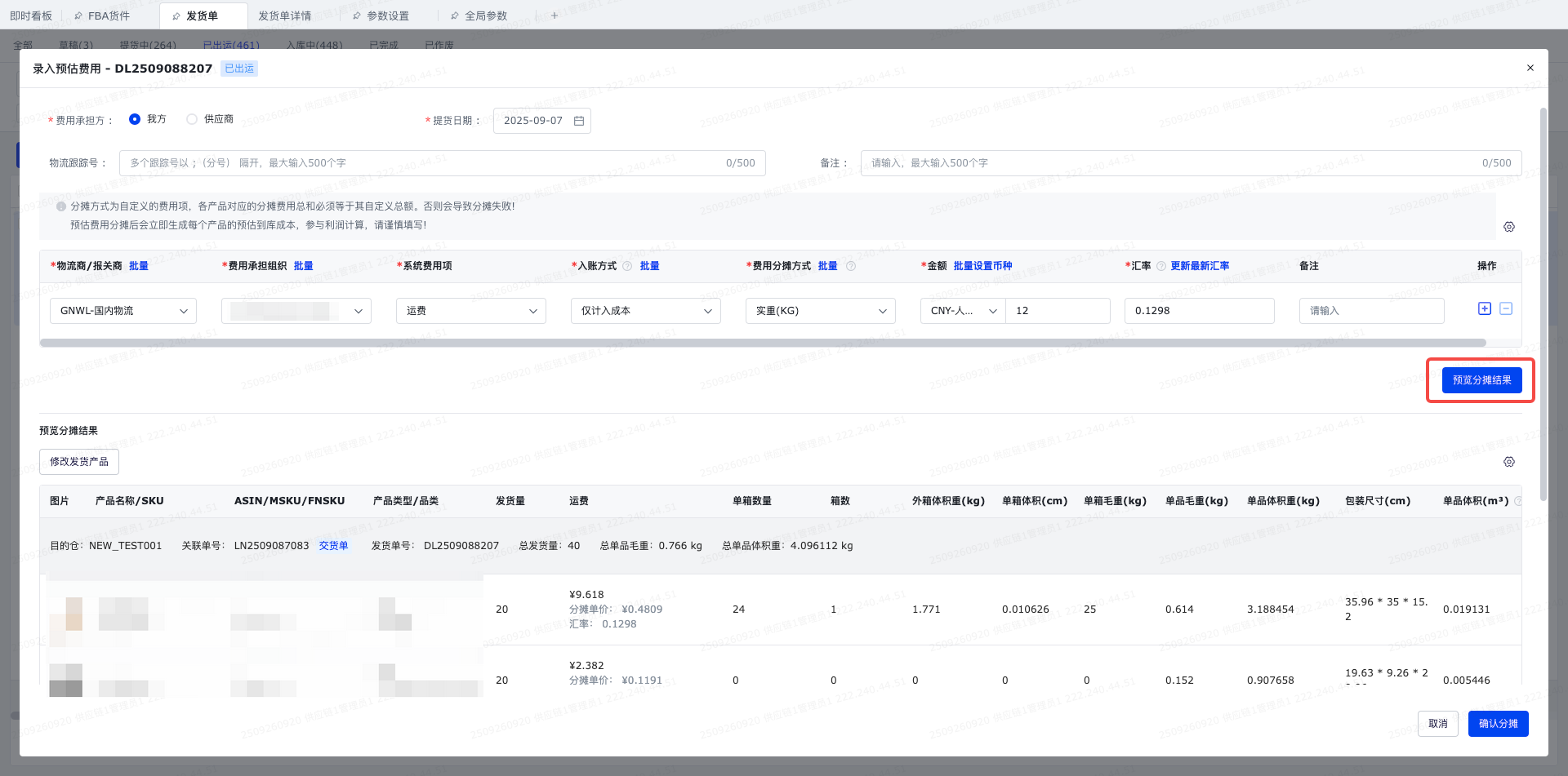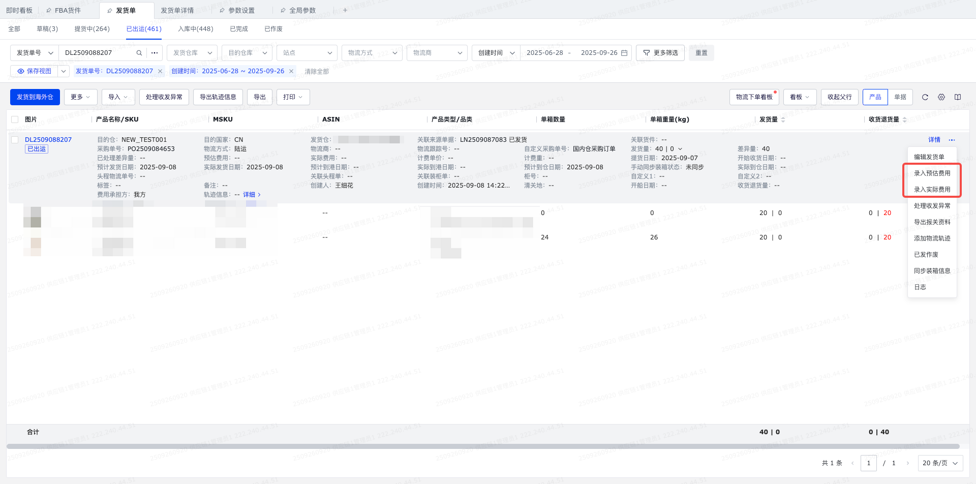 注意: 预估费用可多次录入,且支持修改;等到物流商确认物流费用后,可录入实际物流费用,实际费用只允许录入一次。