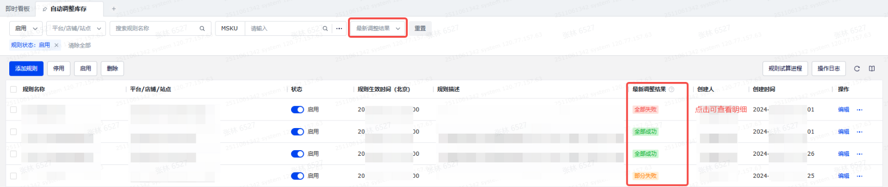 系统支持展示最新的执行结果,帮助卖家快速定位规则执行效果