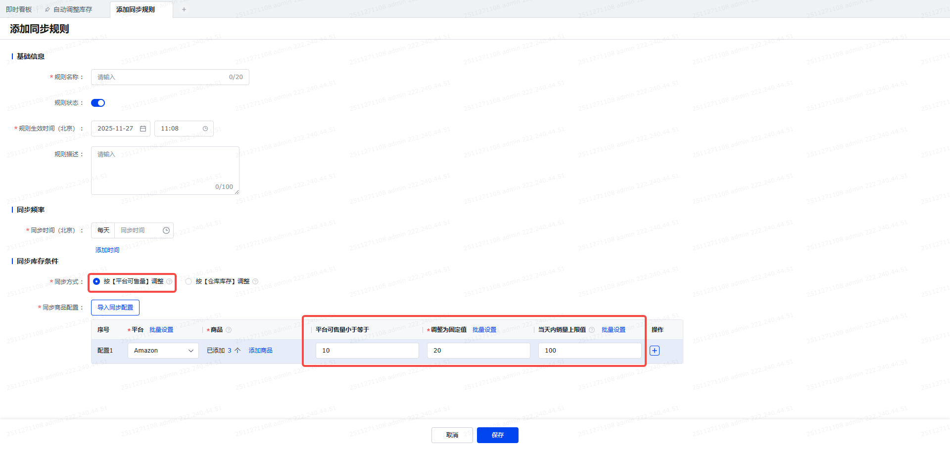 功能价值:运营日常如果频繁手动在后台修改商品可售库存,需要耗费大量的人力和时间;如果通过系统自动化处理,在一定频率下根据规则自动修改商品线上库存同步,节约人力
