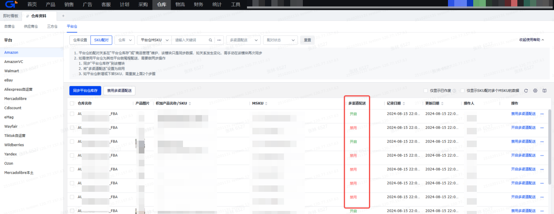 | 根据MSKU唯一确认需要调整库存的商品 | Aliexpress自运营、Mercadolibre、Amazon、eBay、Shoplazza、Otto、ManoMano |