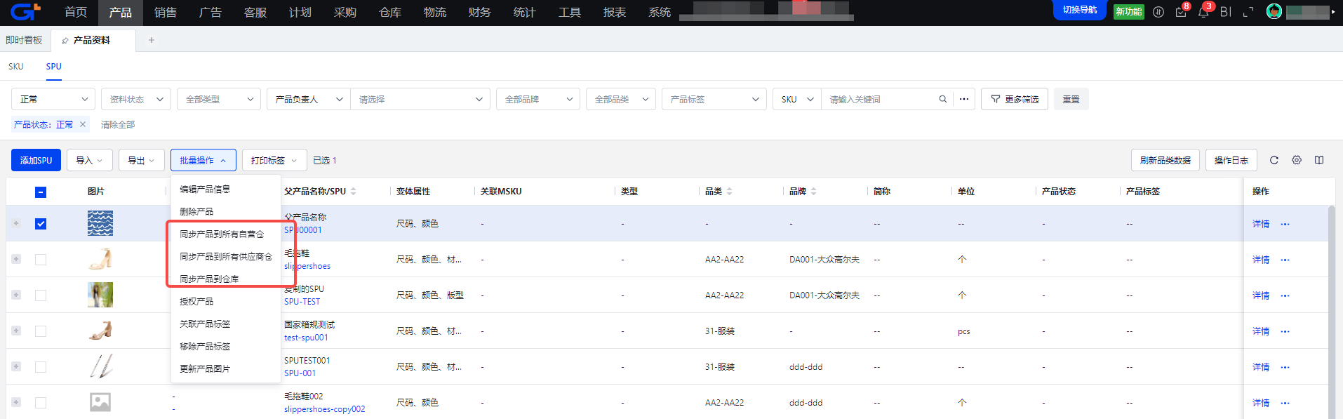 4.导入产品后,需要将产品同步到对应的仓库(如果未同步至仓库,无法进行期初库存导入及采购流程操作):